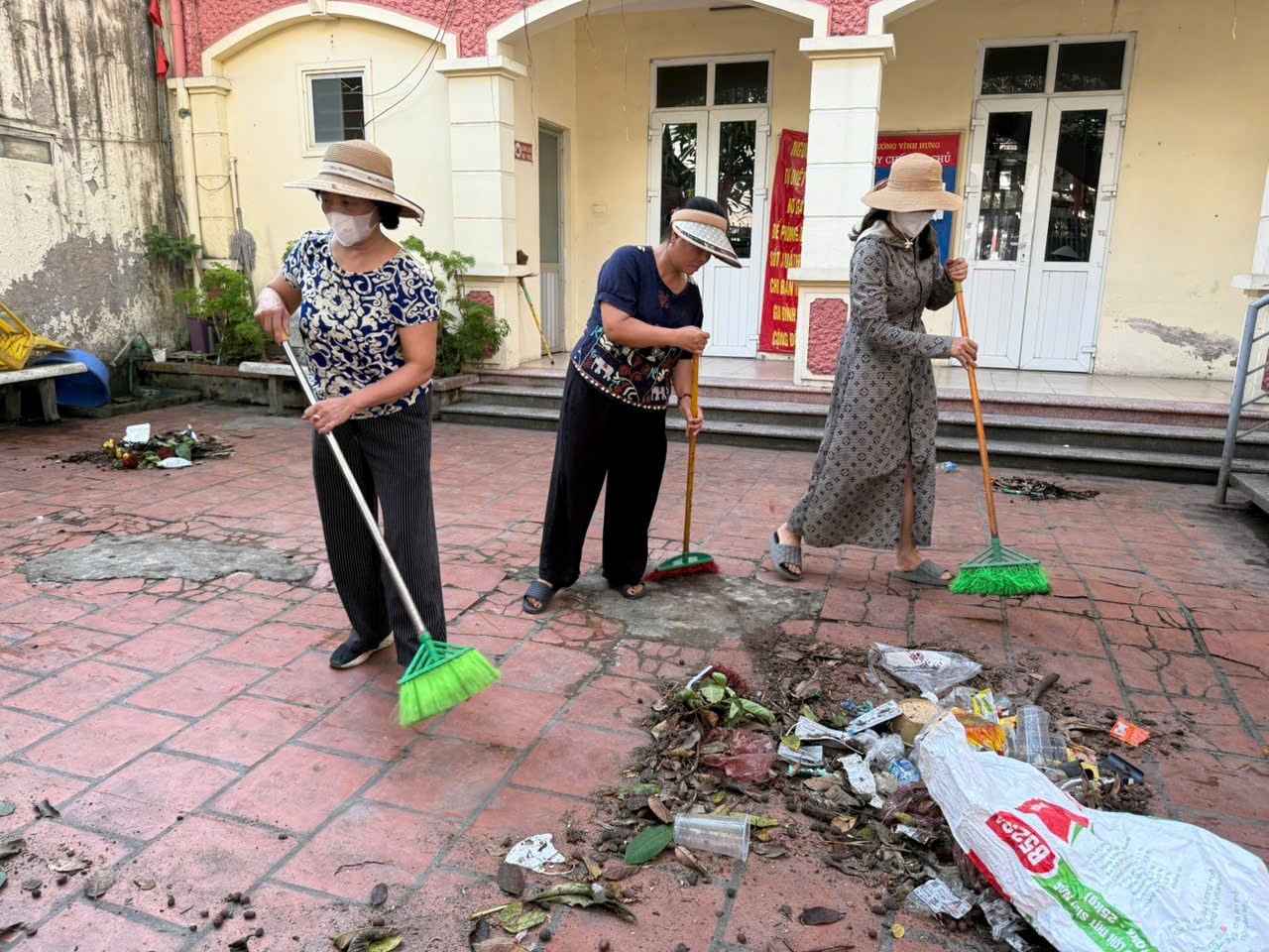 Nhân dân phường Vĩnh Hưng tích cực tham gia tổng vệ sinh môi trường. Ảnh: Vĩnh Hưng