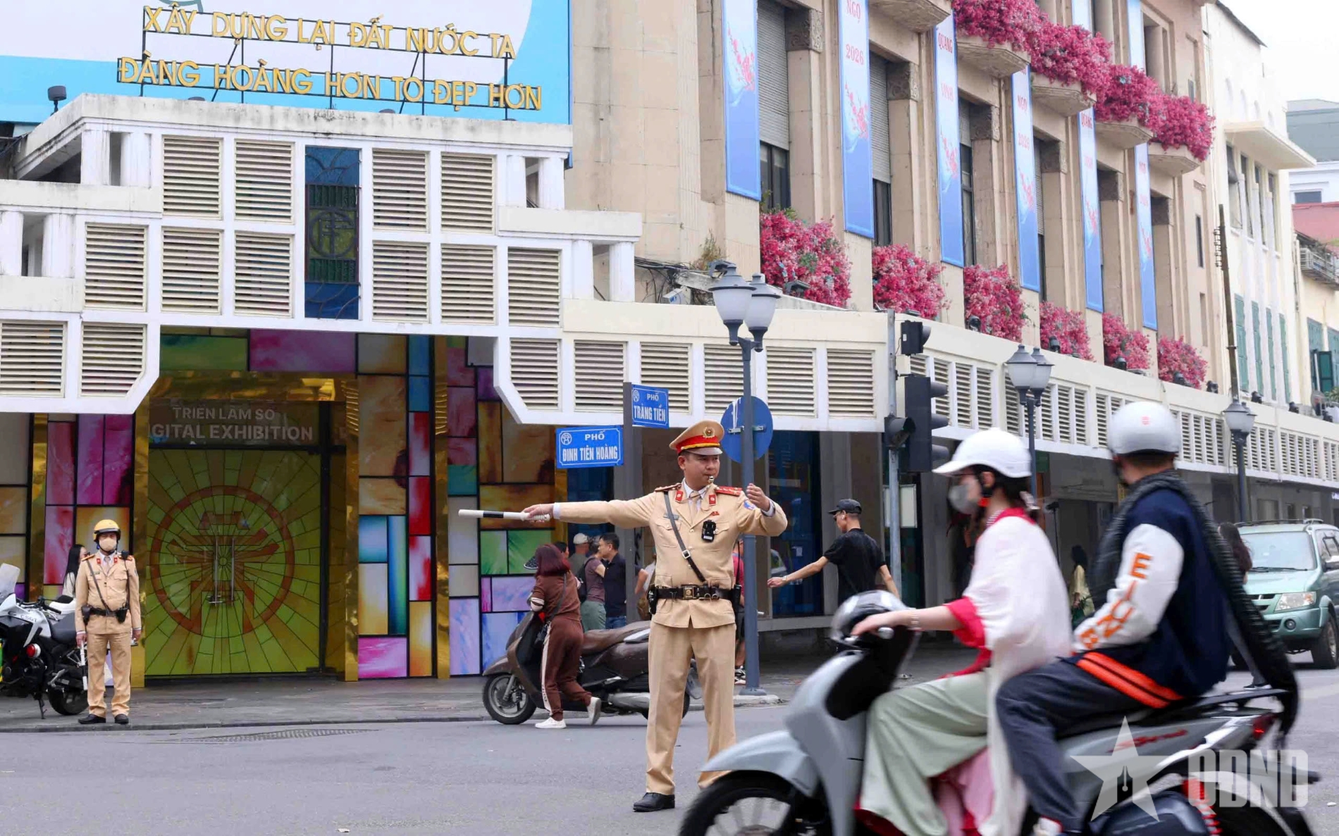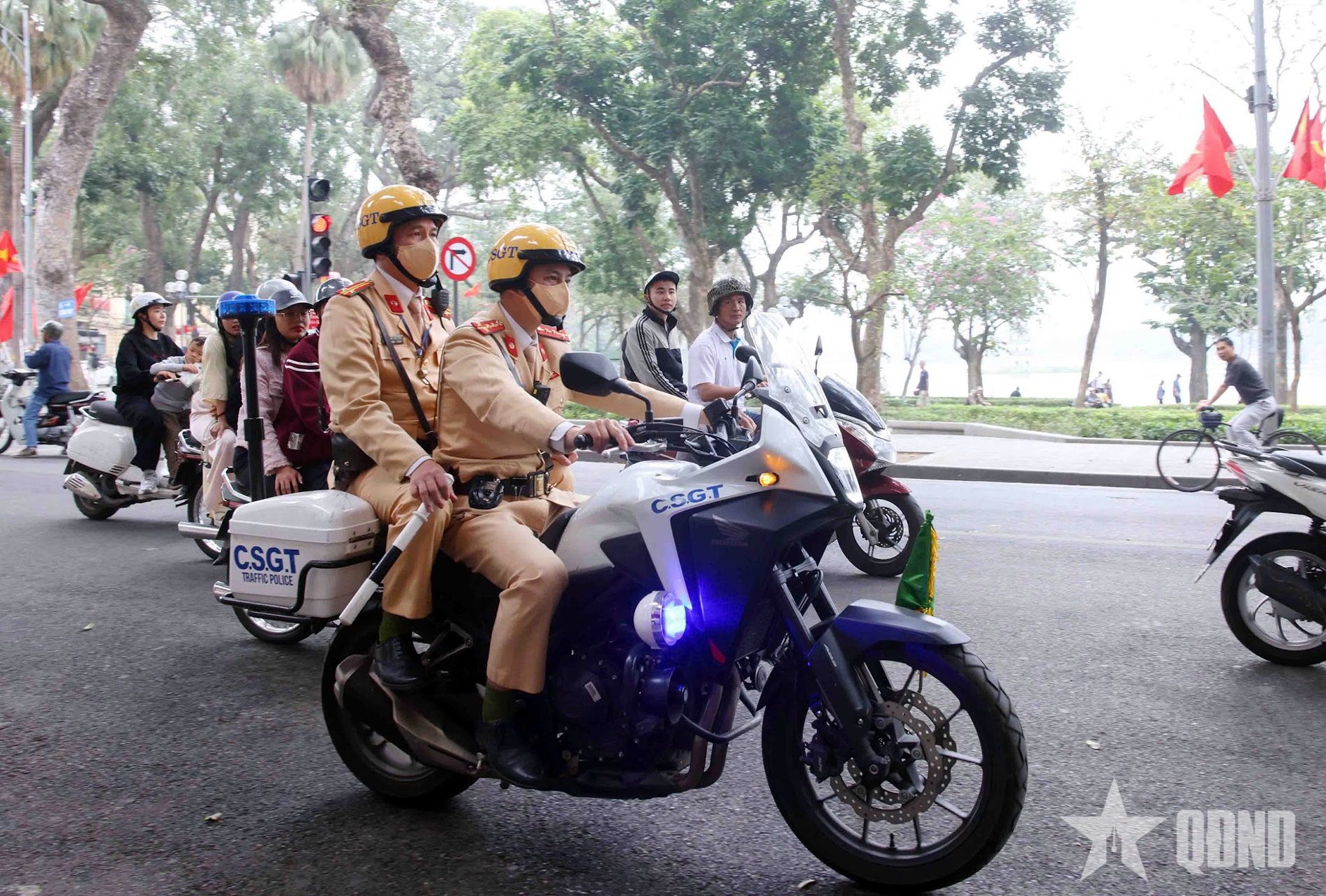 CSGT tuần tra quanh khu vực Hồ Hoàn Kiếm, sáng 17-2.
