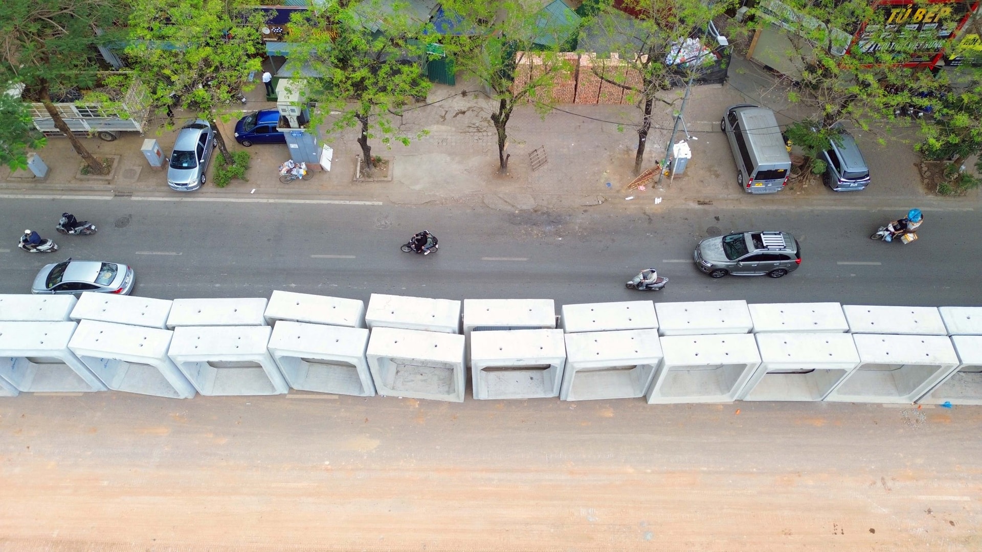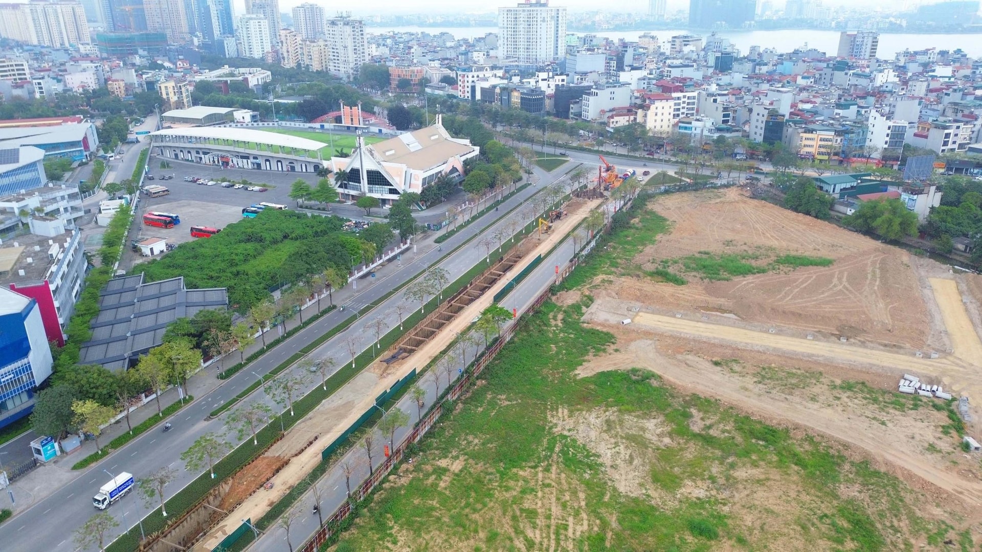 Đáng chú ý, các đoạn cống ngầm kích thước 3x3m đang được tập kết và lắp đặt dọc theo đường Võ Chí Công và Hoàng Minh Thảo. Đây là những hạng mục kỹ thuật phức tạp, đòi hỏi độ chính xác cao để đảm bảo kết nối thông suốt từ nguồn sông Hồng vào nội đô.