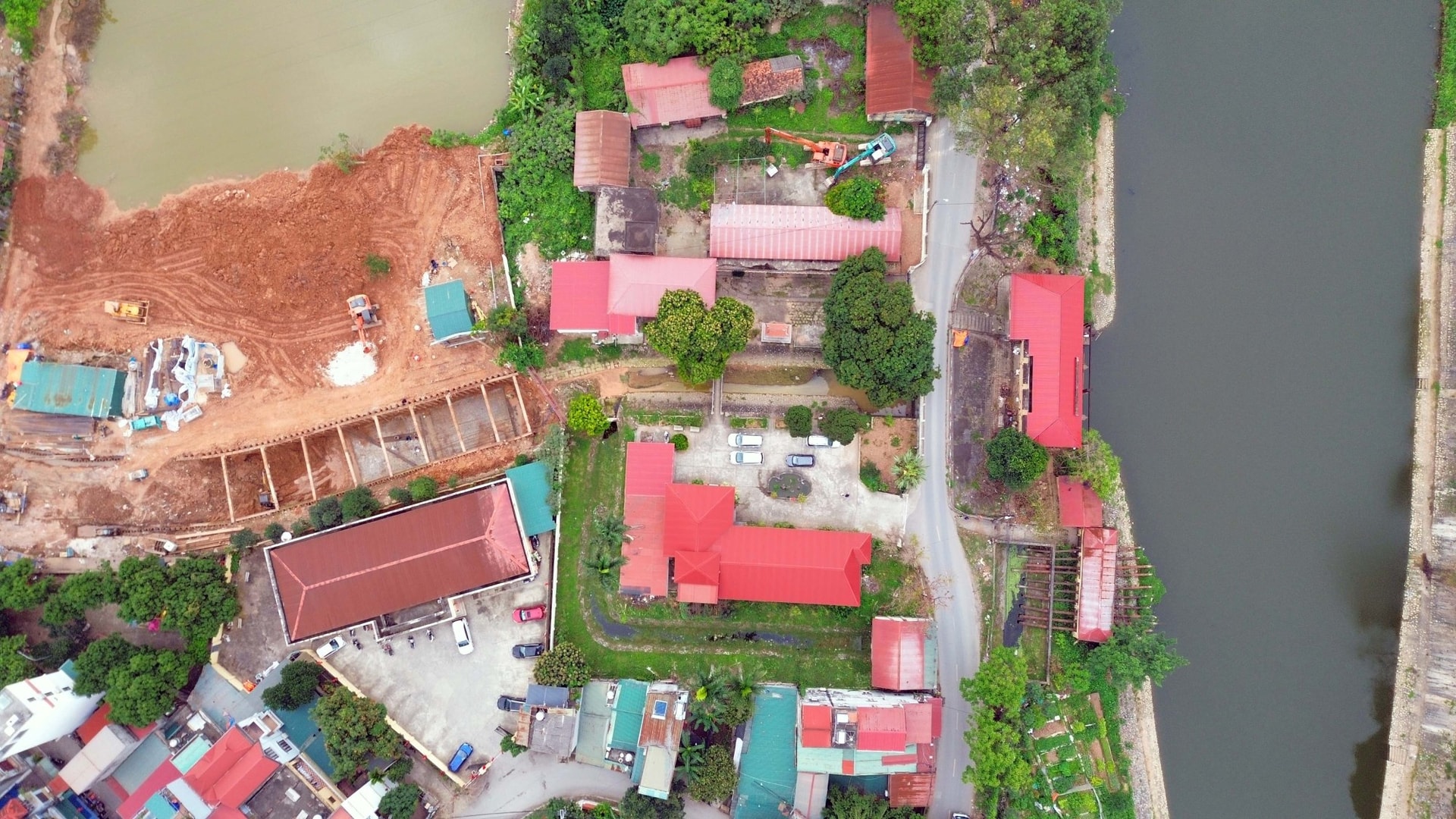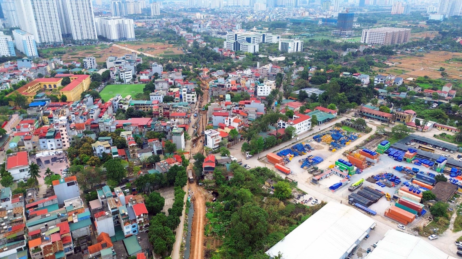 Đoạn kênh đi qua Học viện Tài chính, ĐH Mỏ địa chất đang được cải tạo.