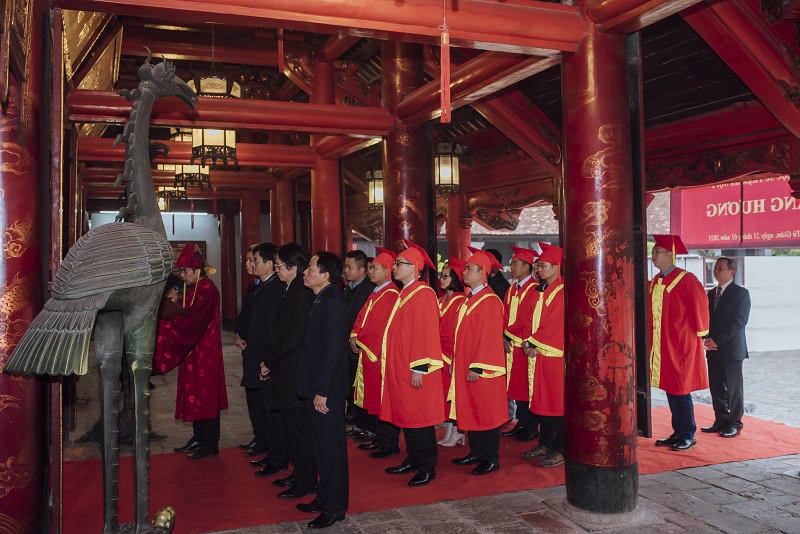 Các tân Tiến sĩ dâng hương tại Văn Miếu - Quốc Tử Giám (Hà Nội). Nguồn: opsa.hpu2.edu.vn