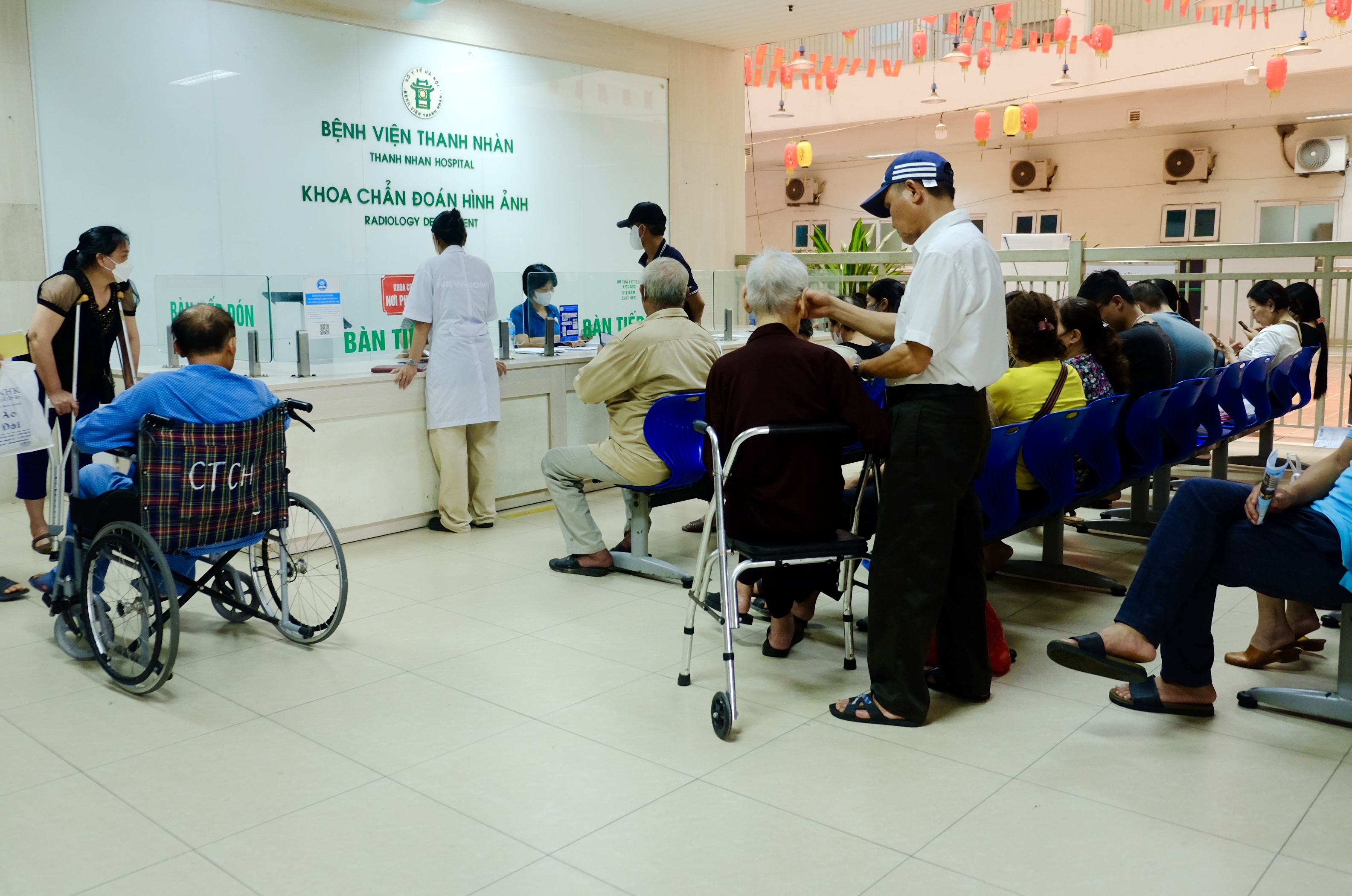 Người dân xếp hàng chờ khám chữa bệnh tại Bệnh viện Thanh Nhàn (Hà Nội). Ảnh: TT