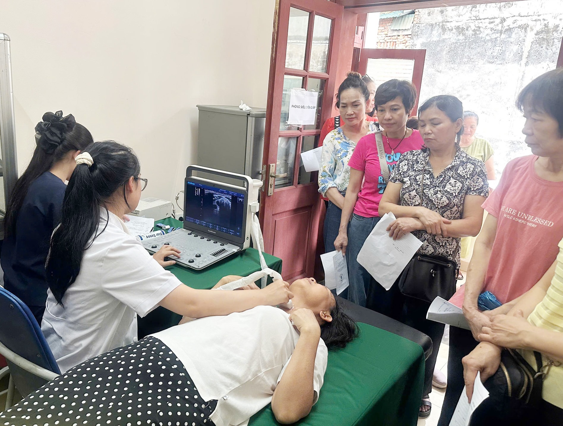 Các bác sĩ siêu âm tuyến giáp cho người dân Hà Nội. Ảnh: Trạm Y tế phường Hoàn Kiếm