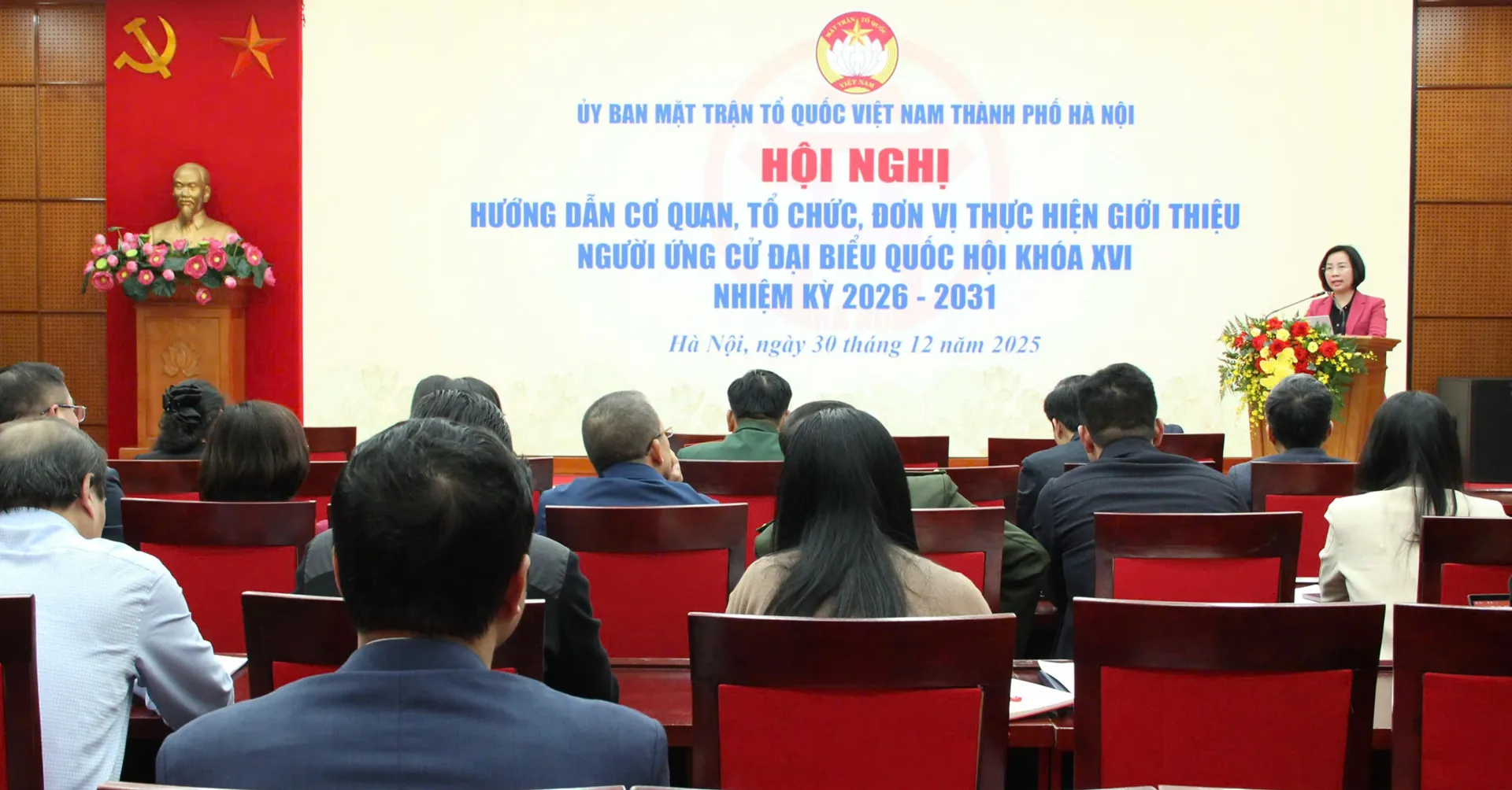 Chiều nay, 30/12, Ủy ban Mặt trận Tổ quốc (MTTQ) Việt Nam TP Hà Nội tổ chức Hội nghị hướng dẫn cơ quan, tổ chức, đơn vị giới thiệu người ứng cử đại biểu Quốc hội khóa XVI, nhiệm kỳ 2026-2031.
