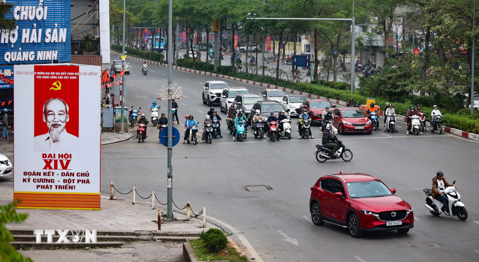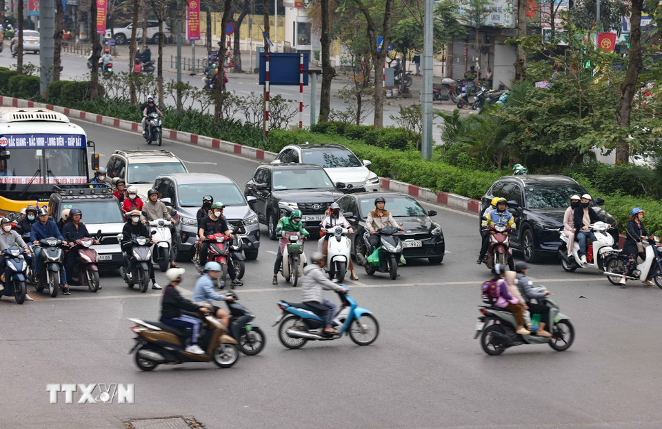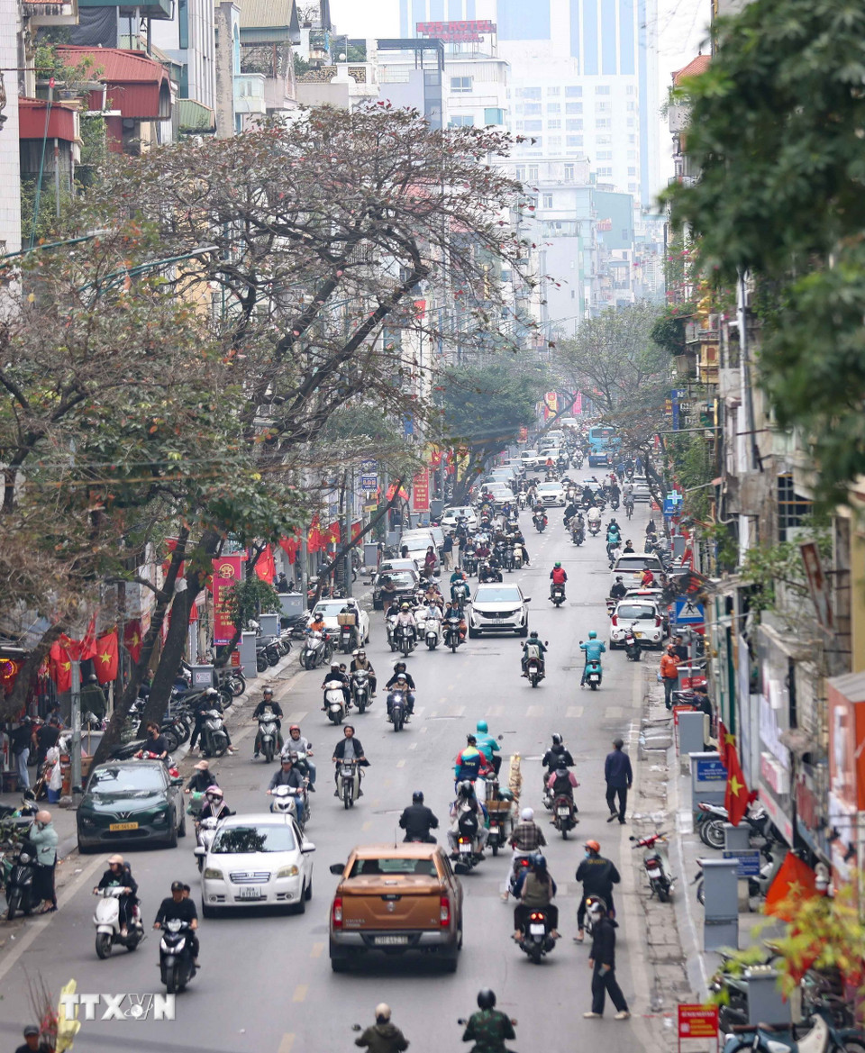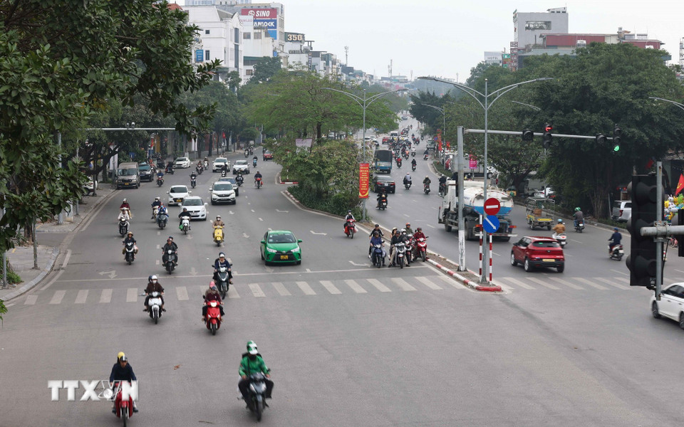 Xe cộ thuận lợi di chuyển qua phố Trần Khát Chân. (Ảnh: Thanh Tùng/TTXVN)