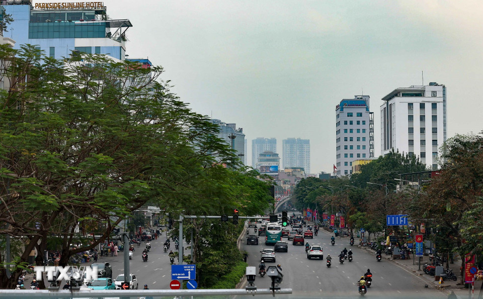 Đường phố thông thoáng, xe cộ thuận lợi di chuyển qua phố Trần Khát Chân. (Ảnh: Thanh Tùng/TTXVN)