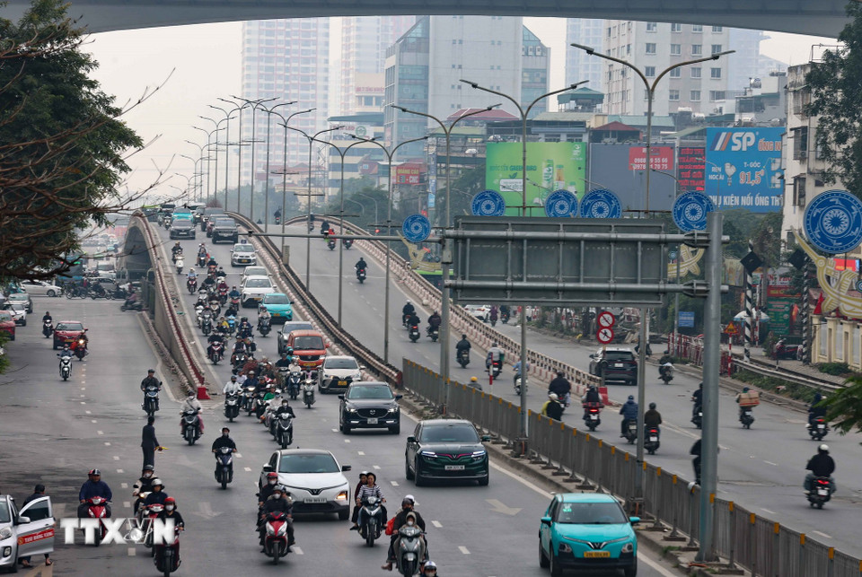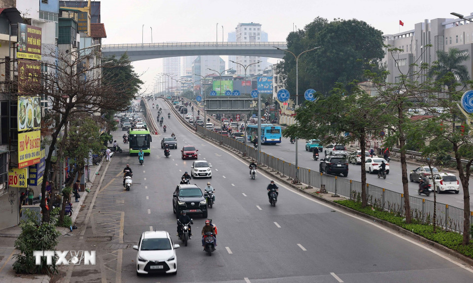 Xe cộ di chuyển thuận lợi qua tuyến đường Giải Phóng. (Ảnh: Thanh Tùng/TTXVN)