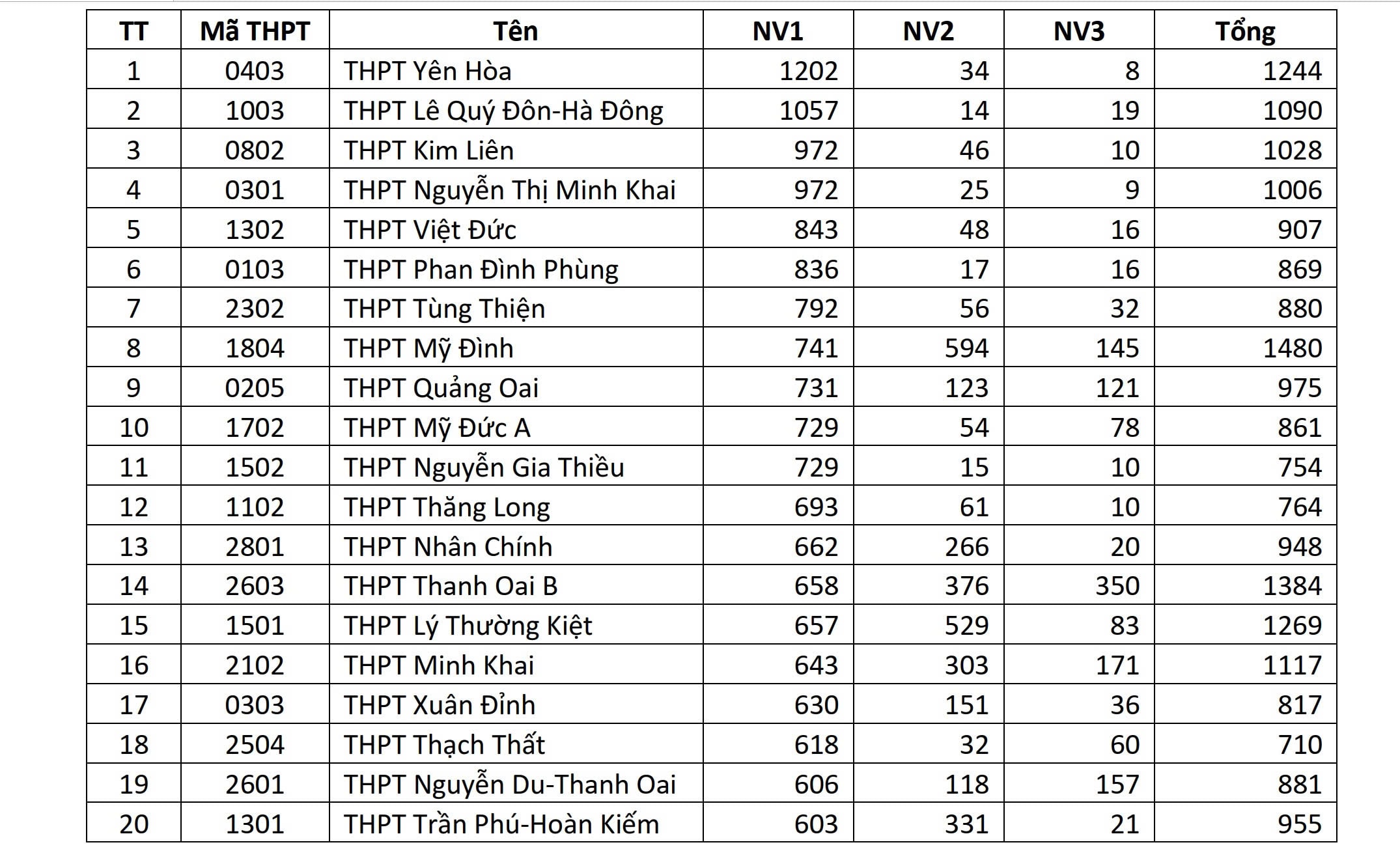 Thống kê ban đầu cũng cho thấy một số trường trung học phổ thông công lập có số lượng đăng ký cao, trong đó có những trường thu hút nhiều nguyện vọng 1 của học sinh.
