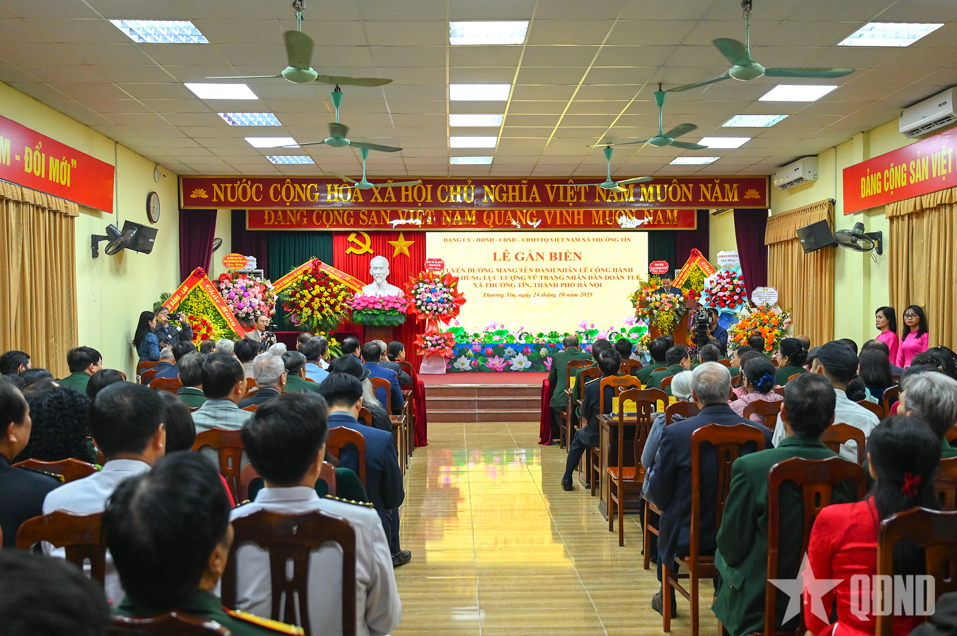 Quang cảnh buổi lễ gắn biển hai tuyến đường mang tên danh nhân Lê Công Hành và Trung tướng, Anh hùng Lực lượng vũ trang nhân dân Doãn Tuế.