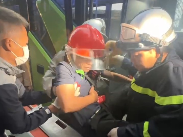 Tài xế xe buýt được giải cứu thành công. Ảnh: NQ