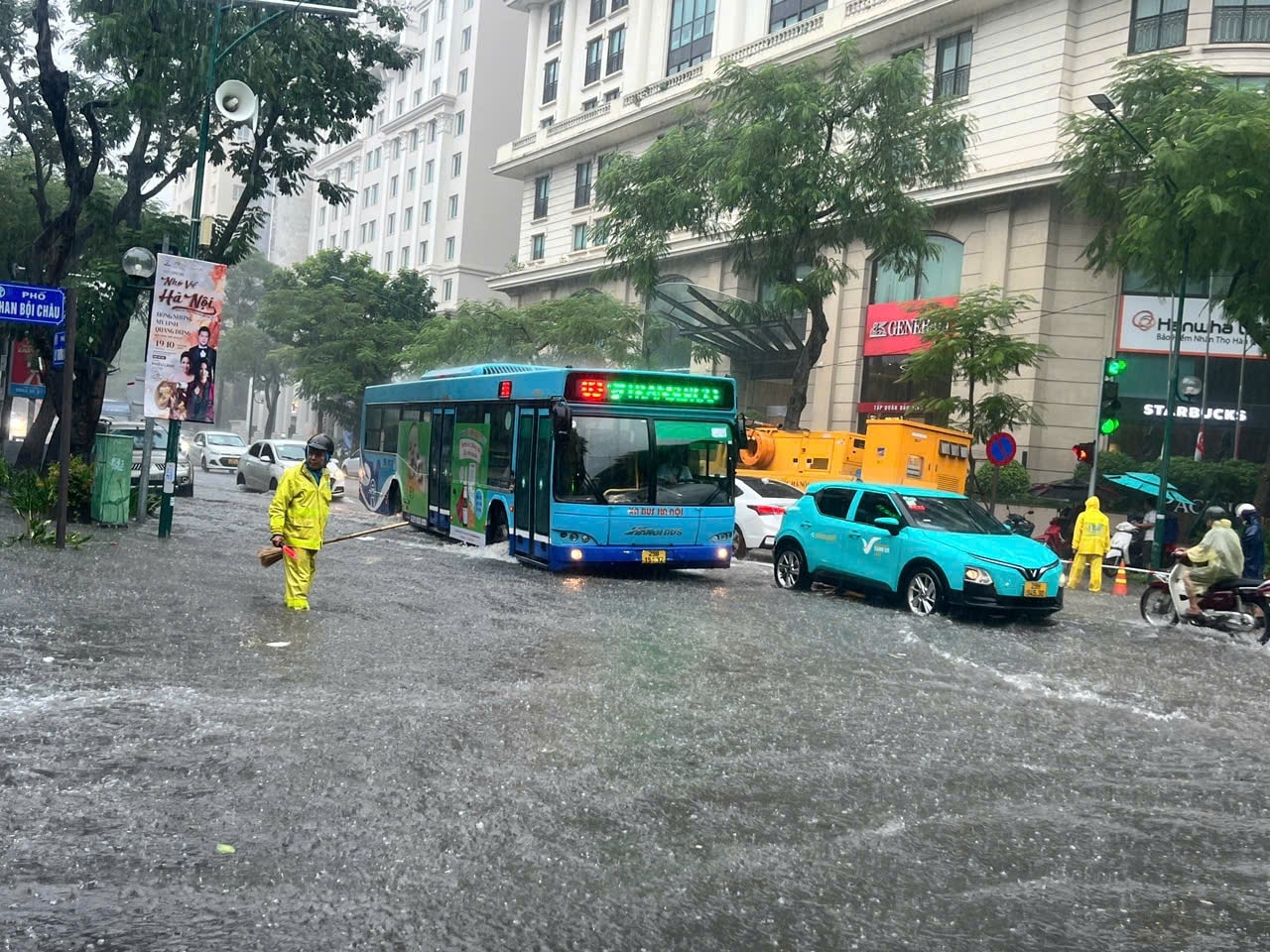 Úng ngập thường xảy ra khi có mưa lớn trên phố Phan Bội Châu, Hà Nội. Ảnh: Uyên Hoàng