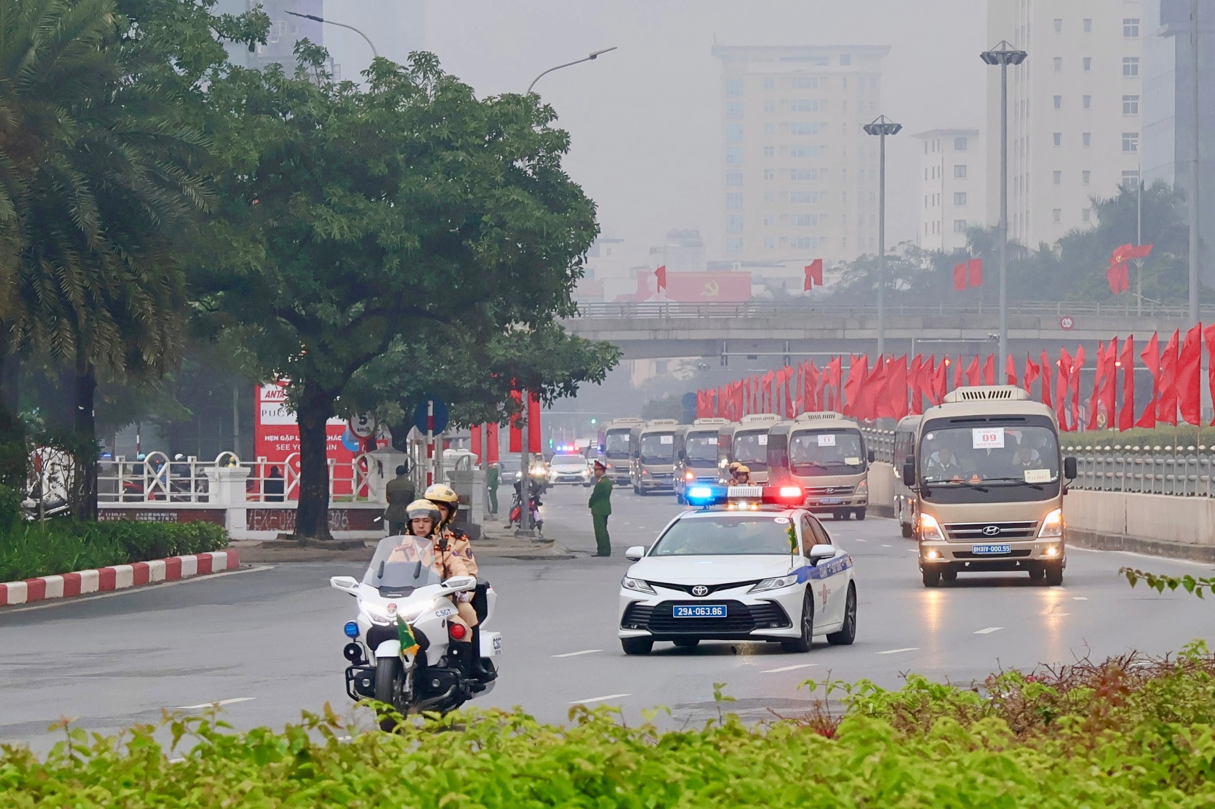 CSGT dẫn đoàn xe chở Đại biểu dự Đại hội trên tuyến Trần Duy Hưng
