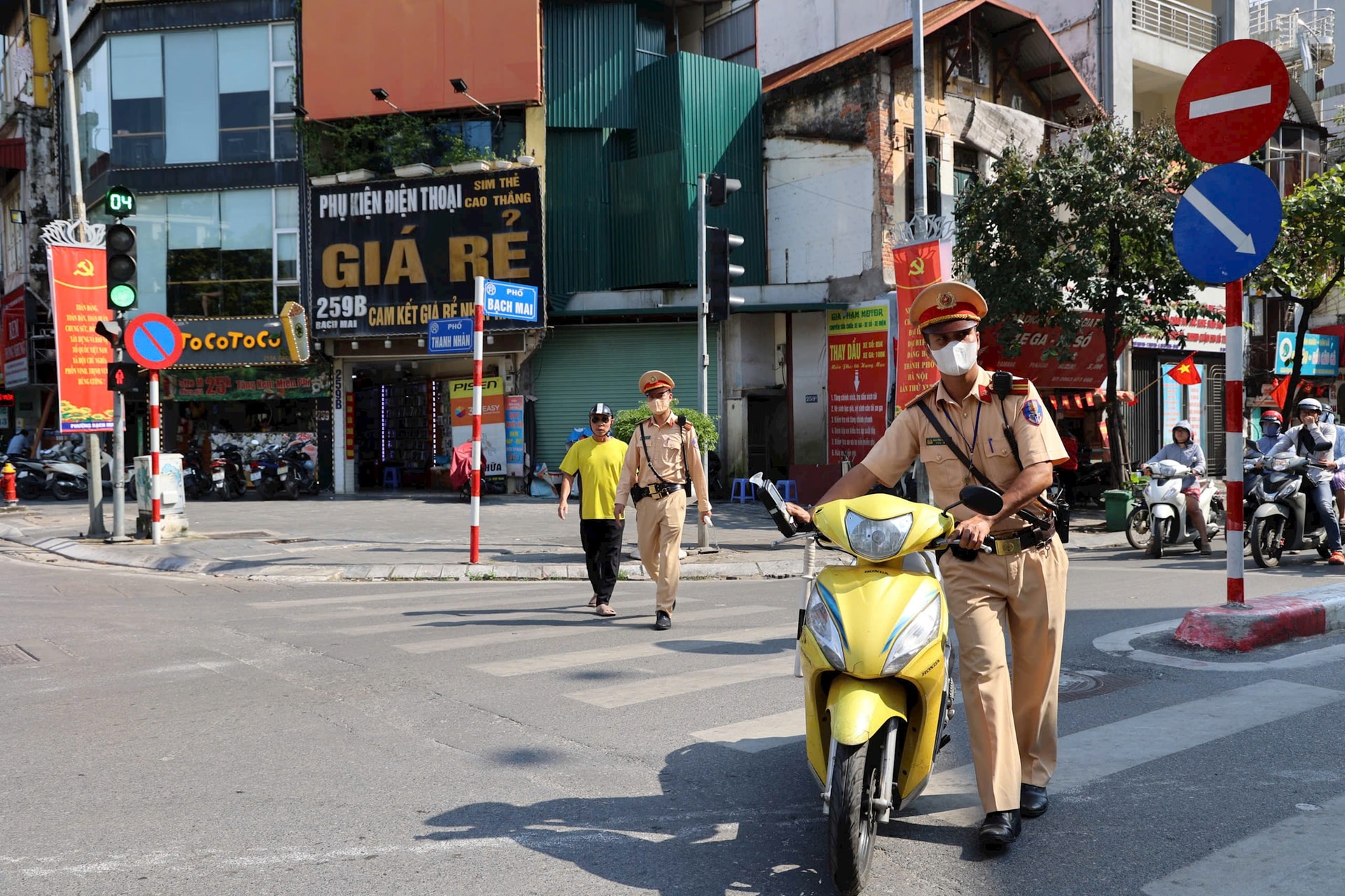 Đội Cảnh sát giao thông đường bộ số 4 kiểm tra tại ngã tư Thanh Nhàn - Bạch Mai phát hiện 6 trường hợp vi phạm. Ảnh: TT