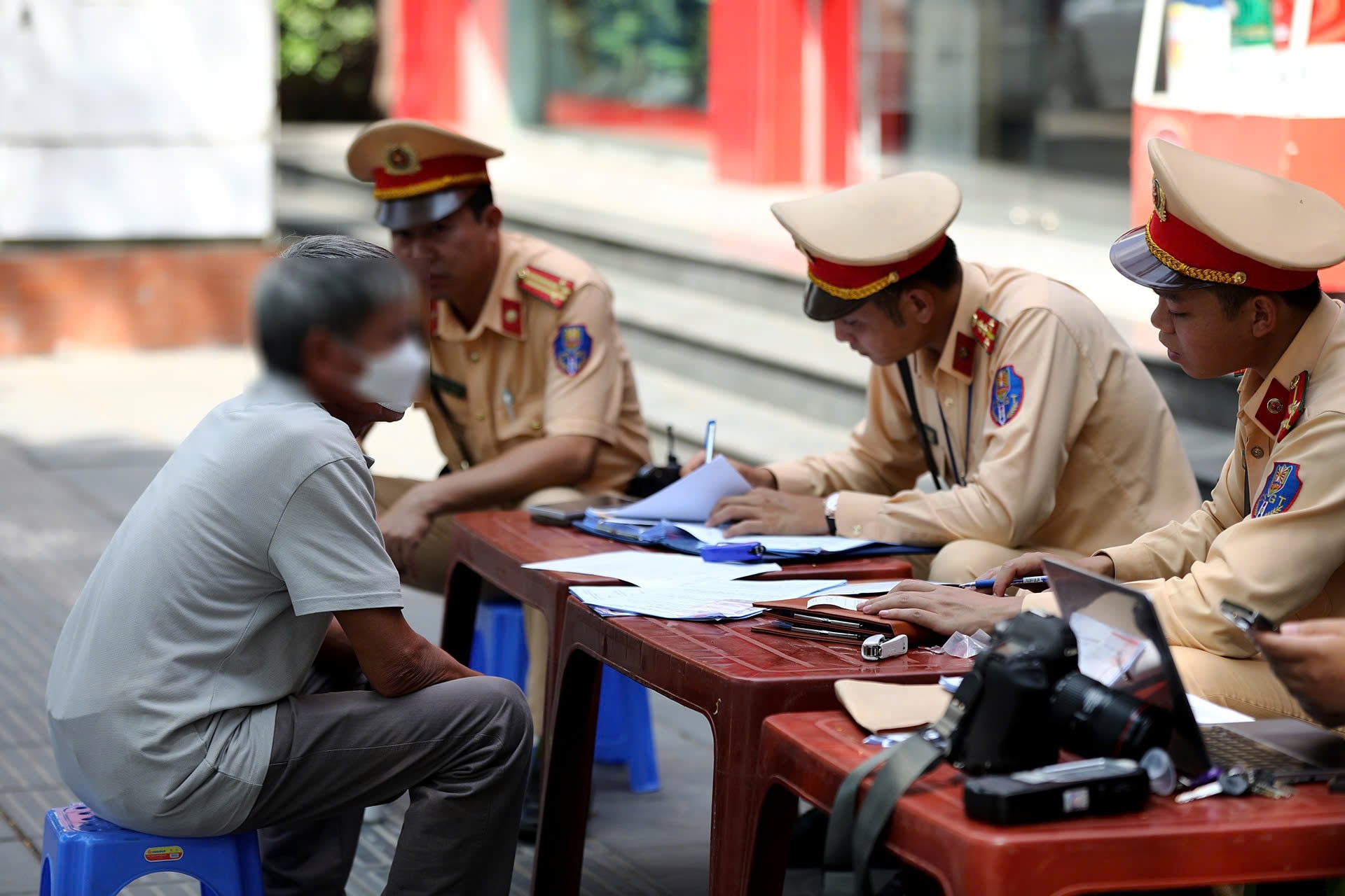 Nhiều trường hợp vi phạm thậm chí còn không mang giấy tờ xe, lực lượng Cảnh sát giao thông mất nhiều thời gian để kiểm tra số khung, số máy phương tiện. Ảnh: TT