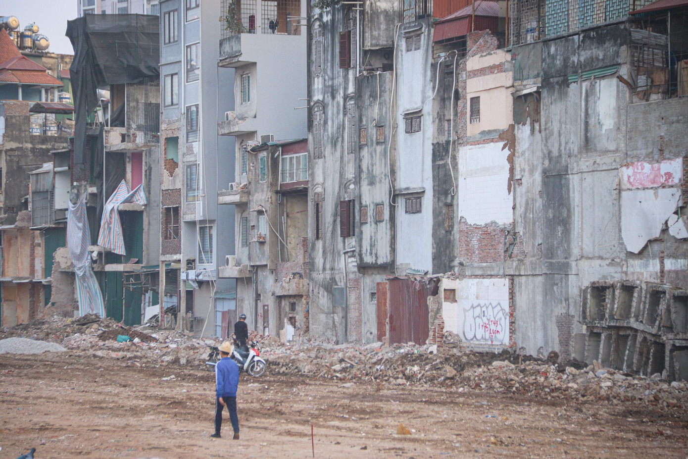 Khi lớp nhà ngoài cùng bị phá dỡ để mở đường rộng 50m, các công trình phía trong bất ngờ lộ diện, trở thành nhà mặt tiền đắc địa dọc tuyến Vành đai 1.