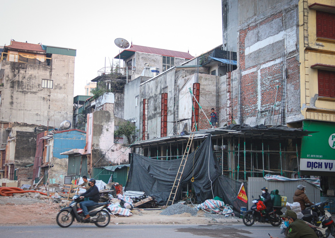 Trong phạm vi dự án đường Vành đai 1, nhiều ngôi nhà sau khi đã cắt gọn theo chỉ giới giải phóng mặt bằng đang tiếp tục được sửa chữa, hoàn thiện lại kết cấu.