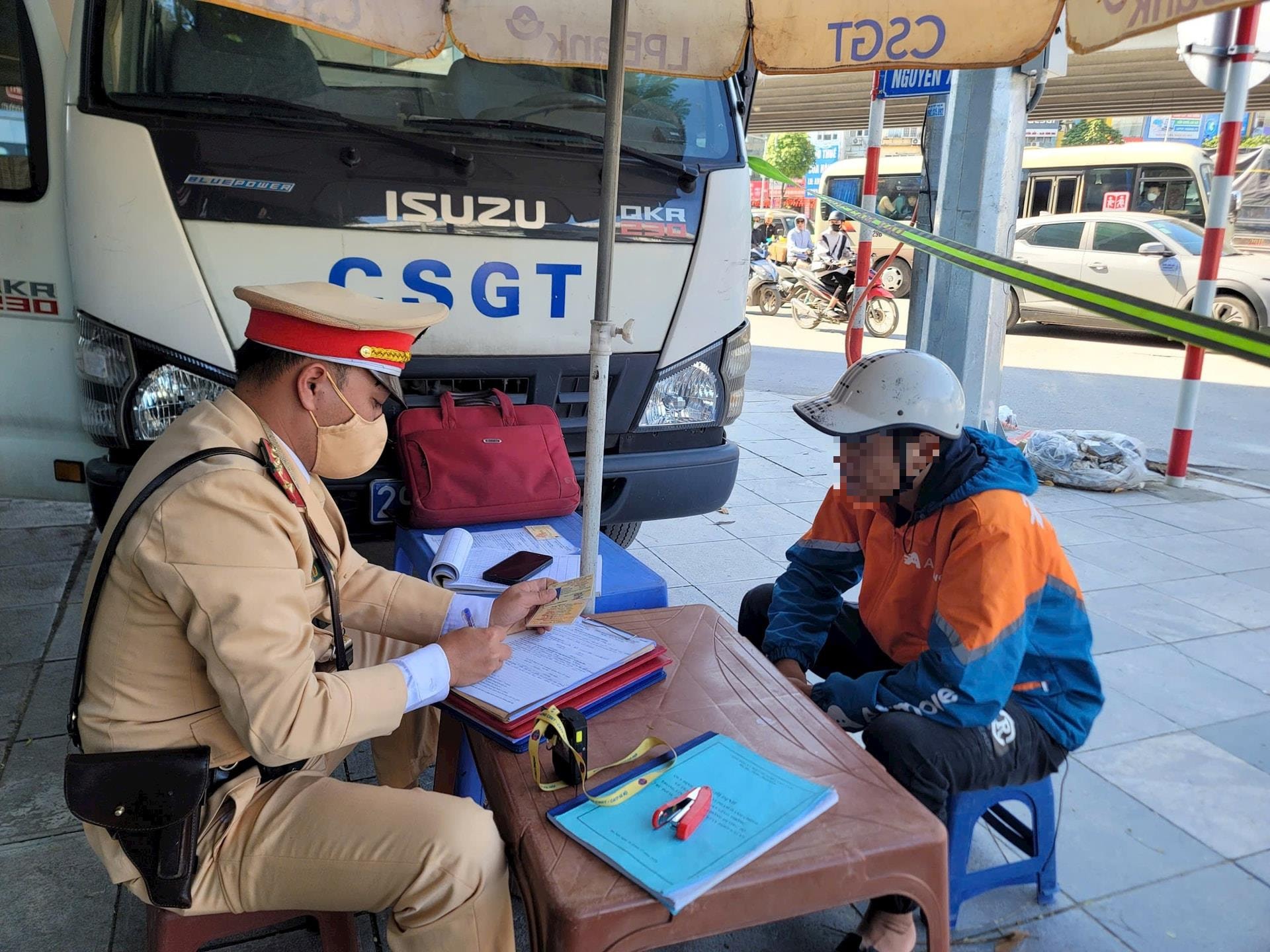 Cán bộ Đội Cảnh sát giao thông đường bộ số 4 chỉ ra lỗi vi phạm của tài xế. Ảnh: TT