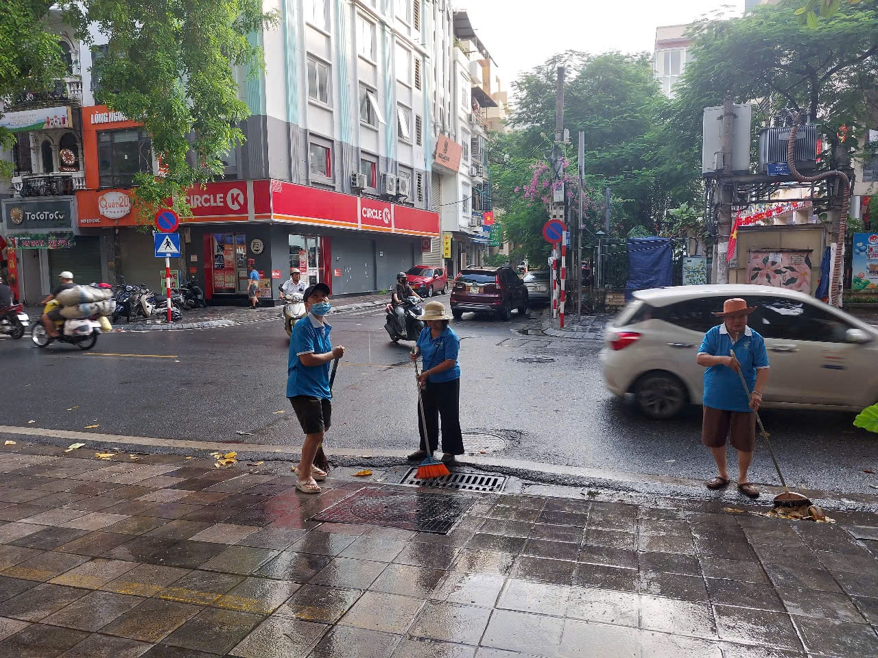Cô Hiền cùng hàng xóm trong cùng nhau quét dọn vệ sinh, giữ cho khu phố luôn sạch đẹp
