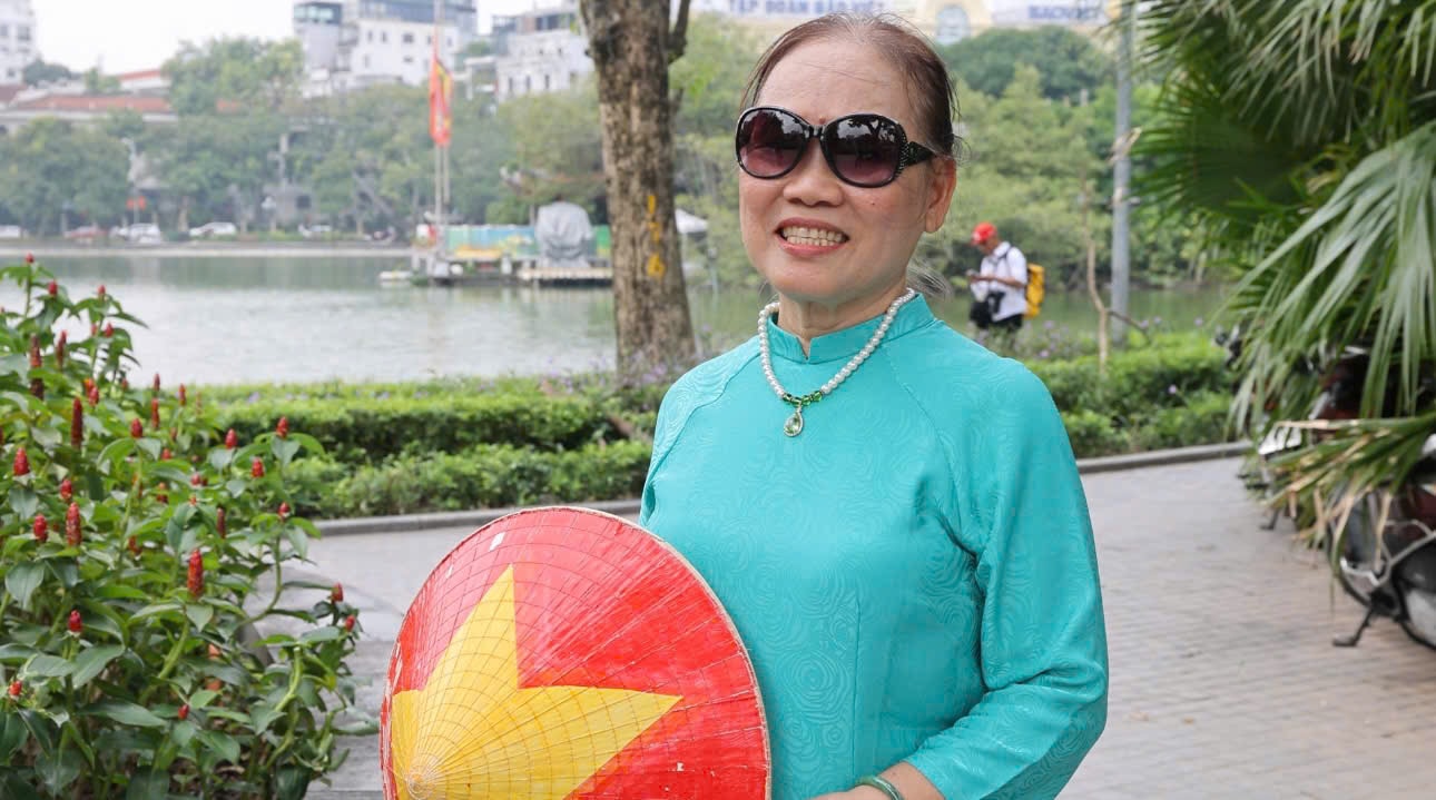 Cô Lưu Thị Hiền đã gần 80 tuổi, nhiều năm gắn bó công tác phụ nữ và tổ dân phố, cho biết vào các ngày lễ lớn, chị em lại vận động bà con treo cờ, dọn dẹp ngõ phố. “Hôm nay, nhân kỷ niệm 71 năm Giải phóng Thủ đô, chúng tôi lên Hồ Gươm ngắm cảnh, ghi lại vài hình ảnh làm kỷ niệm. Thấy đường phố sạch, đẹp, người đi ngoạn cảnh rất đẹp, ai cũng phấn khởi,” cô chia sẻ.