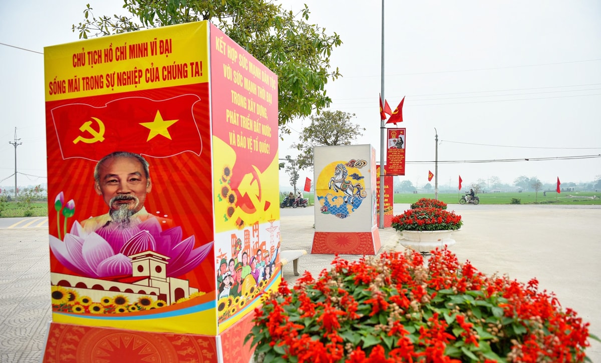 Cụm pa nô tuyên truyền bầu cử đại biểu Quốc hội khóa XVI và đại biểu HĐND các cấp nhiệm kỳ 2026-2031 tại xã Vật Lại. Ảnh: Phan Anh