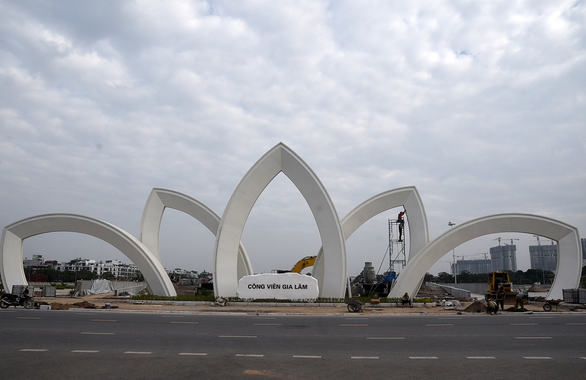 Công viên Gia Lâm có diện tích mặt hồ hơn 9,3 ha với điểm nhấn là quảng trường hoa sen, hệ thống cây xanh, đài phun nước và cổng chính mang kiến trúc hiện đại.