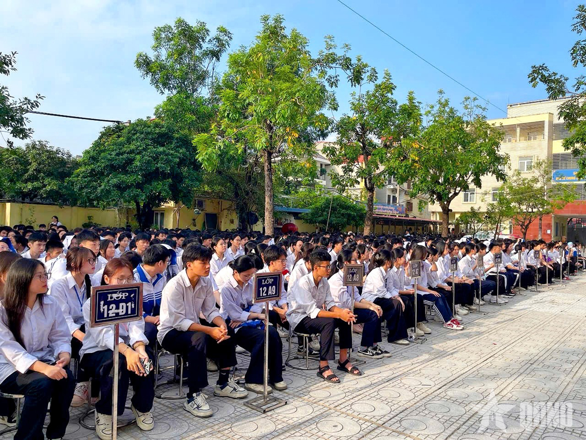 Học sinh các khối Trường THPT Trần Hưng Đạo - Hà Đông dự buổi tuyên truyền.