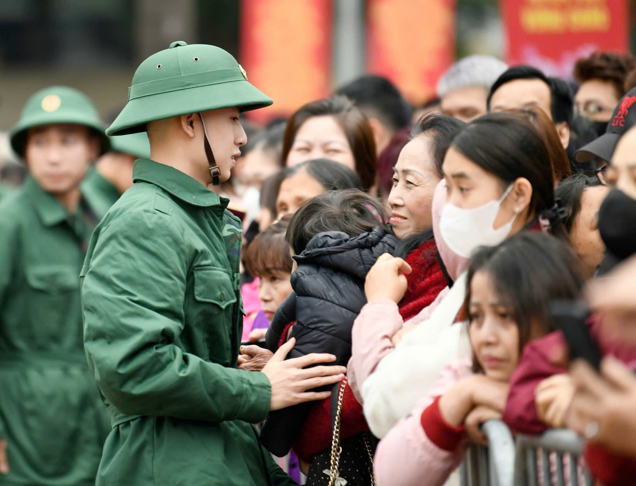 Giây phút xúc động của một tân binh khi chia tay người thân. Ảnh: VIẾT CHUNG