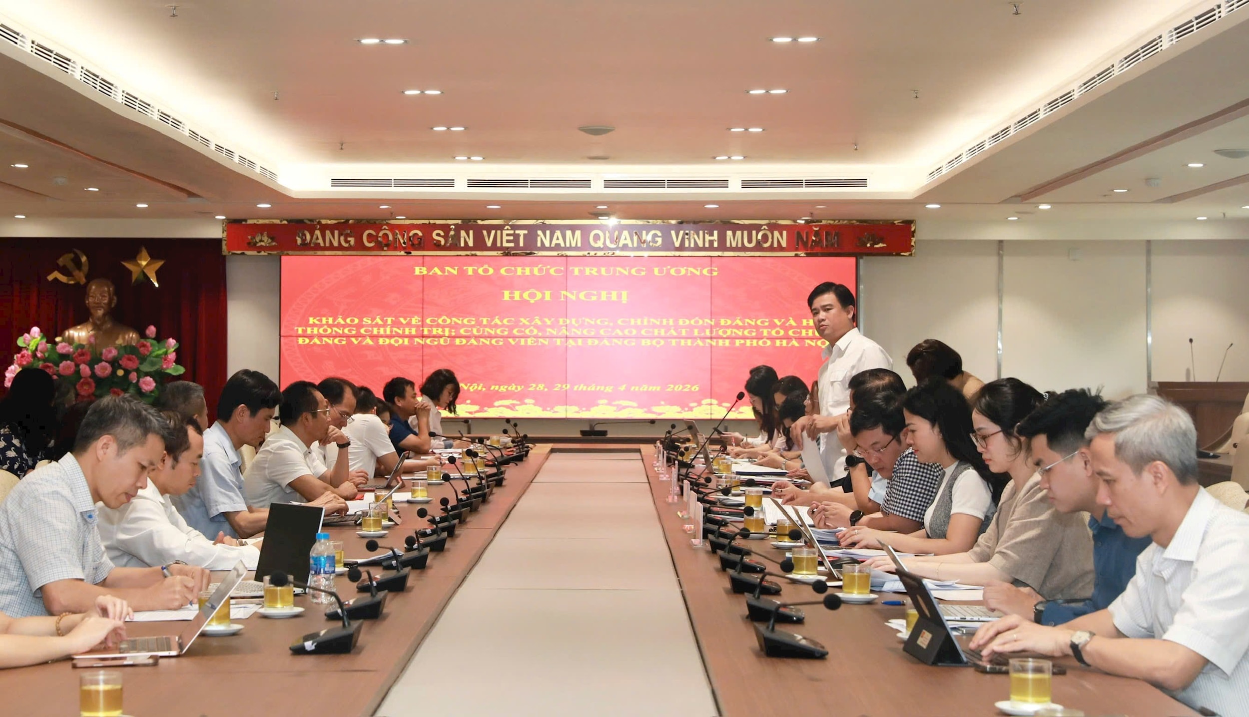 Phát biểu kết luận hội nghị, Vụ trưởng Vụ cơ sở đảng, đảng viên (Ban Tổ chức Trung ương) Trần Viết Cường trân trọng cảm ơn Thành ủy Hà Nội, Ban Tổ chức Thành ủy và các cấp ủy, nhà trường đã phối hợp, cung cấp nhiều ý kiến thực tiễn, bổ ích cho Đoàn khảo sát.