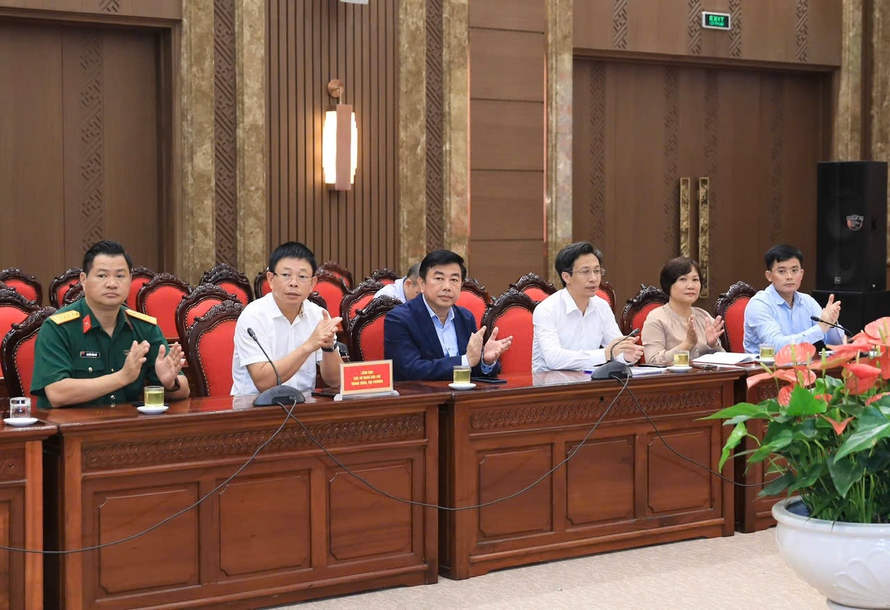 Các đồng chí lãnh đạo thành phố Hà Nội chủ trì họp báo. Ảnh: Quang Thái