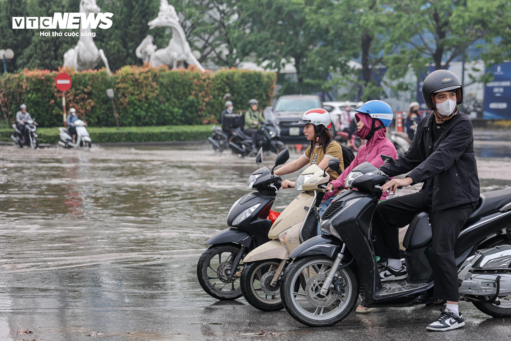 Các tuyến đường xung quanh khu đô thị Ciputra bị ngập sâu, khiến nhiều người dân lúng túng lựa chọn hướng di chuyển phù hợp. Theo dự báo của trung tâm khí tượng, hôm nay, Hà Nội và các tỉnh miền Bắc tiếp tục xảy ra mưa rào và dông rải rác, có nơi mưa to với lượng mưa trên 30 mm. Trong mưa dông, người dân đề phòng có khả năng xảy ra lốc, sét, mưa đá và gió giật mạnh.
