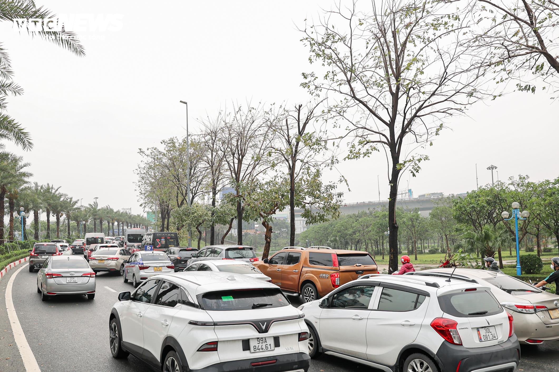 Tại lối xuống cầu Nhật Tân theo hướng Âu Cơ - Nghi Tàm, tình trạng ùn tắc cũng kéo dài, các phương tiện phải di chuyển chậm, nhích từng đoạn.