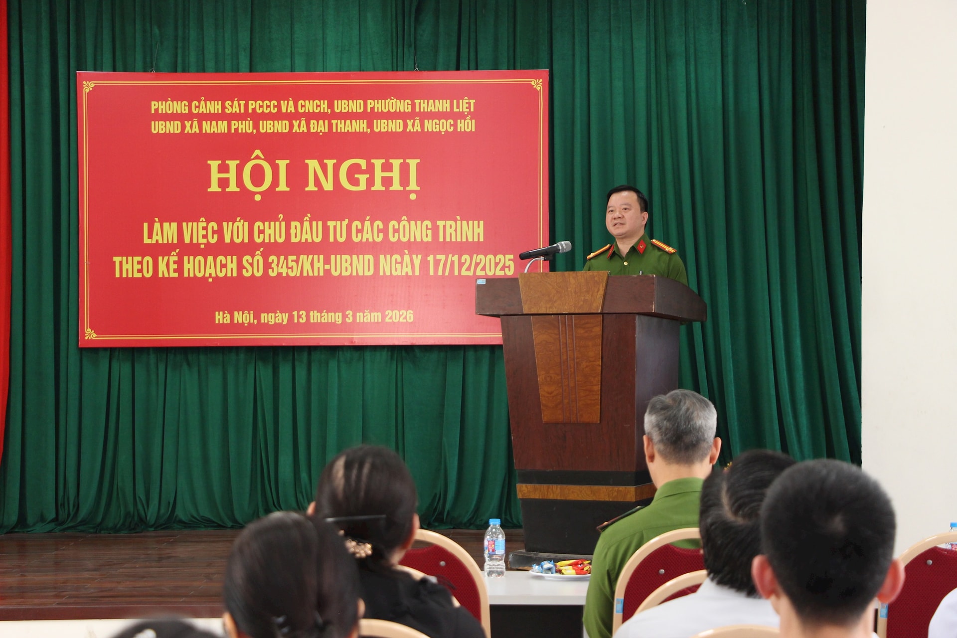 Chiều 13-3, Đội Chữa cháy và Cứu nạn, cứu hộ khu vực số 31 (Phòng Cảnh sát phòng cháy, chữa cháy và cứu nạn, cứu hộ, Công an thành phố Hà Nội) tổ chức phổ biến, quán triệt các văn bản chỉ đạo, hướng dẫn và cam kết lộ trình khắc phục đối với các công trình đưa vào hoạt động khi chưa được nghiệm thu về phòng cháy, chữa chá trên địa bàn phường Thanh Liệt và các xã: Đại Thanh, Nam Phù, Ngọc Hồi.
