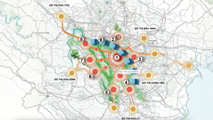 Sơ đồ phát triển liên vùng đô thị trong đồ án Quy hoạch tổng thể Thủ đô Hà Nội tầm nhìn 100 năm.
