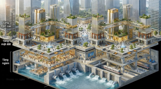 Phối cảnh phát triển Hà Nội theo mô hình đa tầng, đa lớp, theo đồ án Quy hoạch tổng thể Thủ đô Hà Nội tầm nhìn 100 năm.