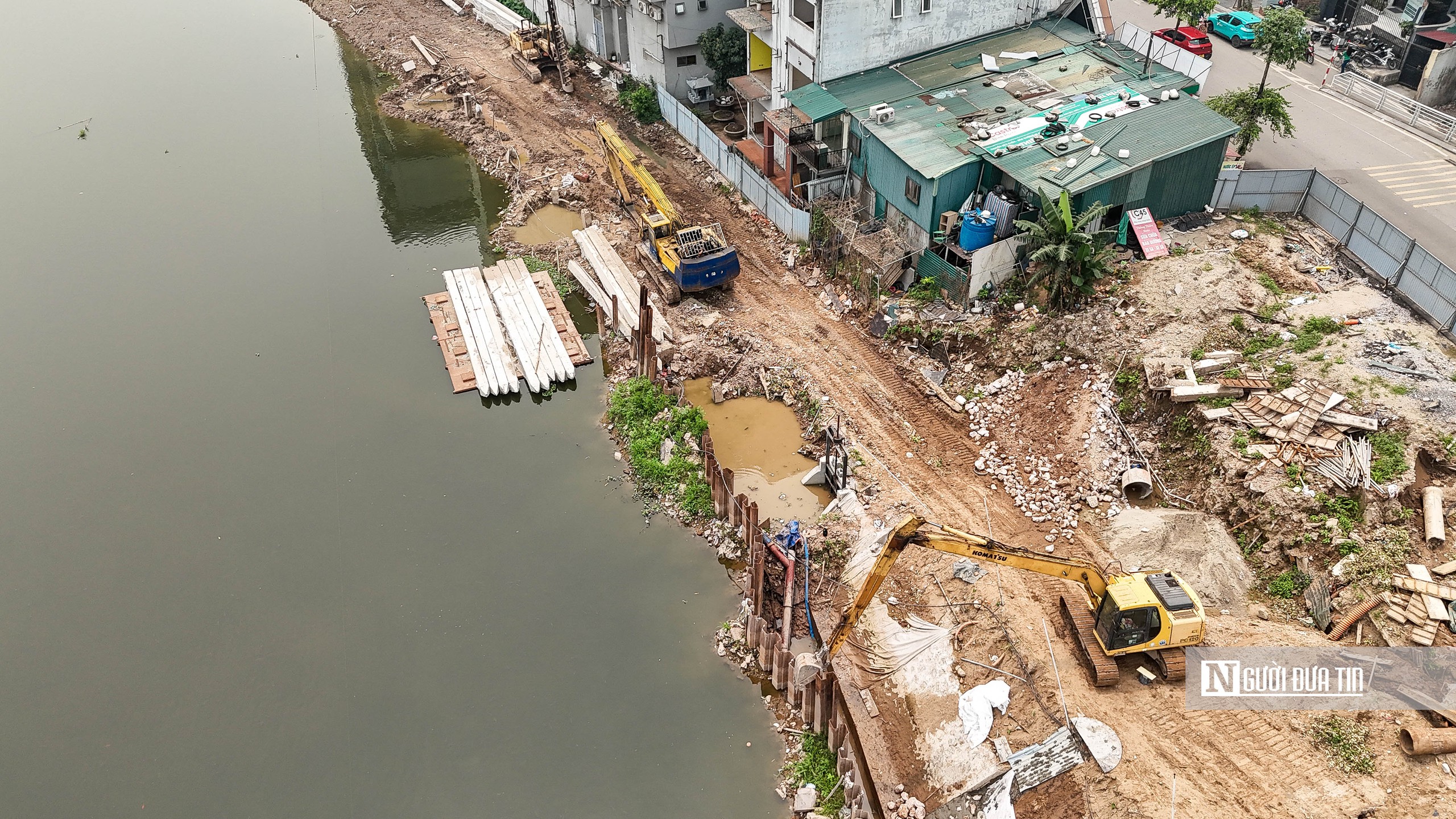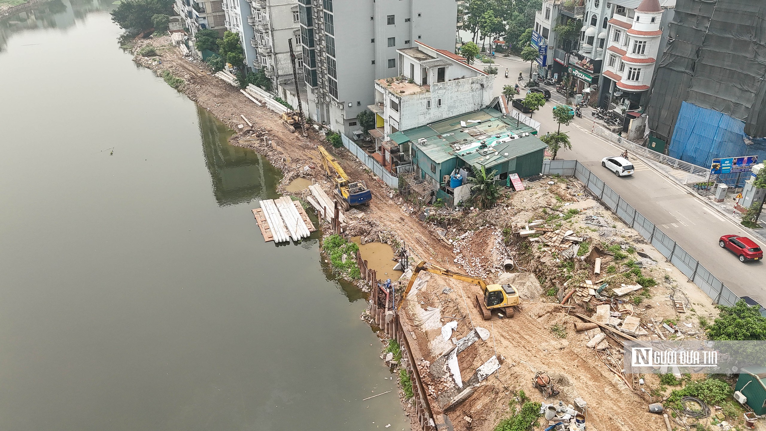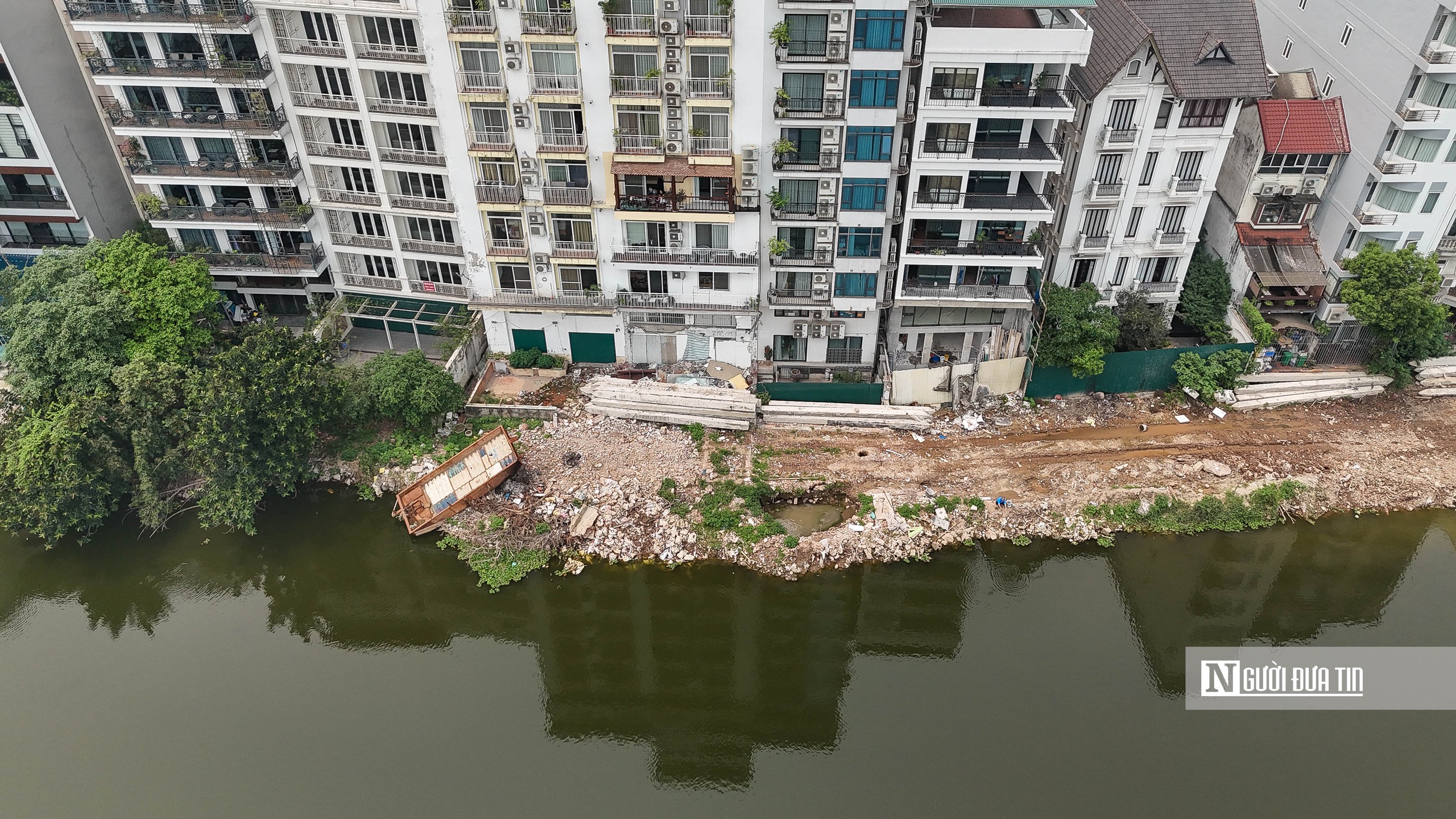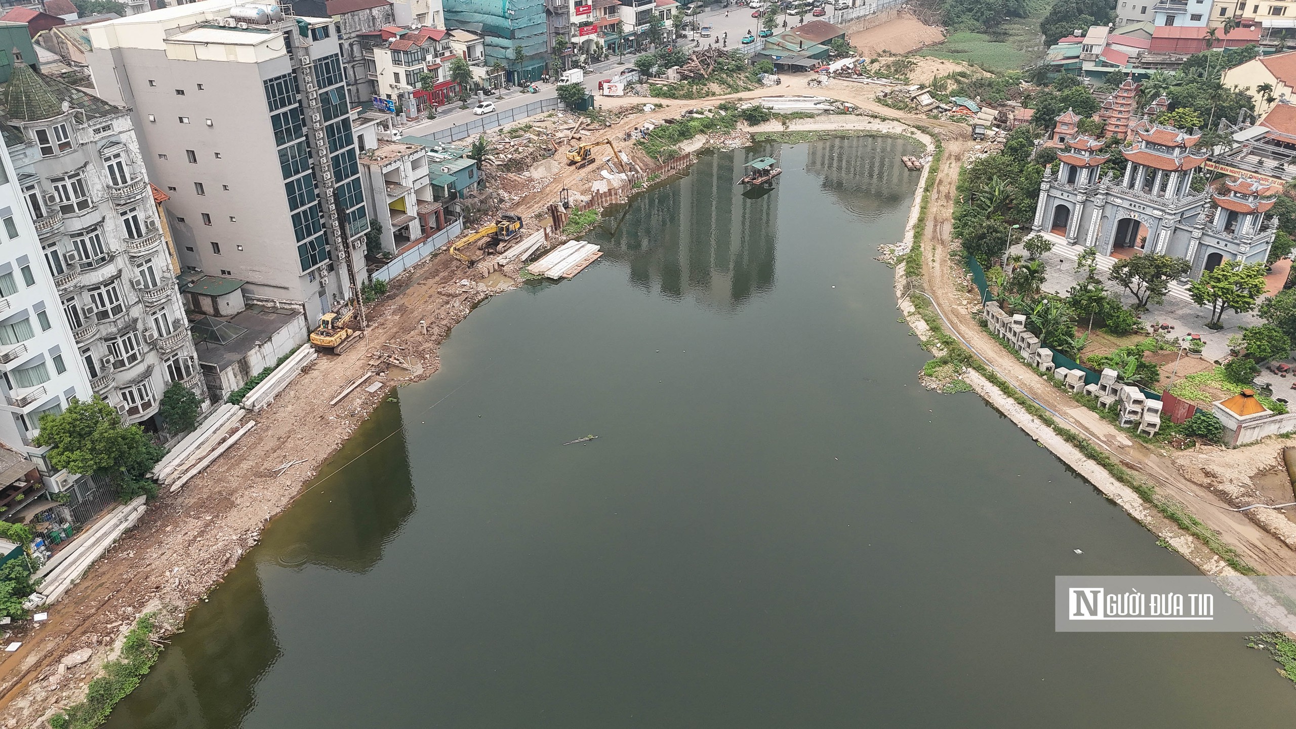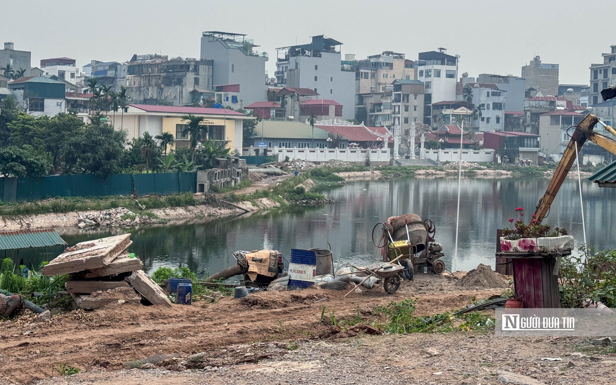 Hiện một phần hồ Tứ Liên vẫn đang trong quá trình ép kè.