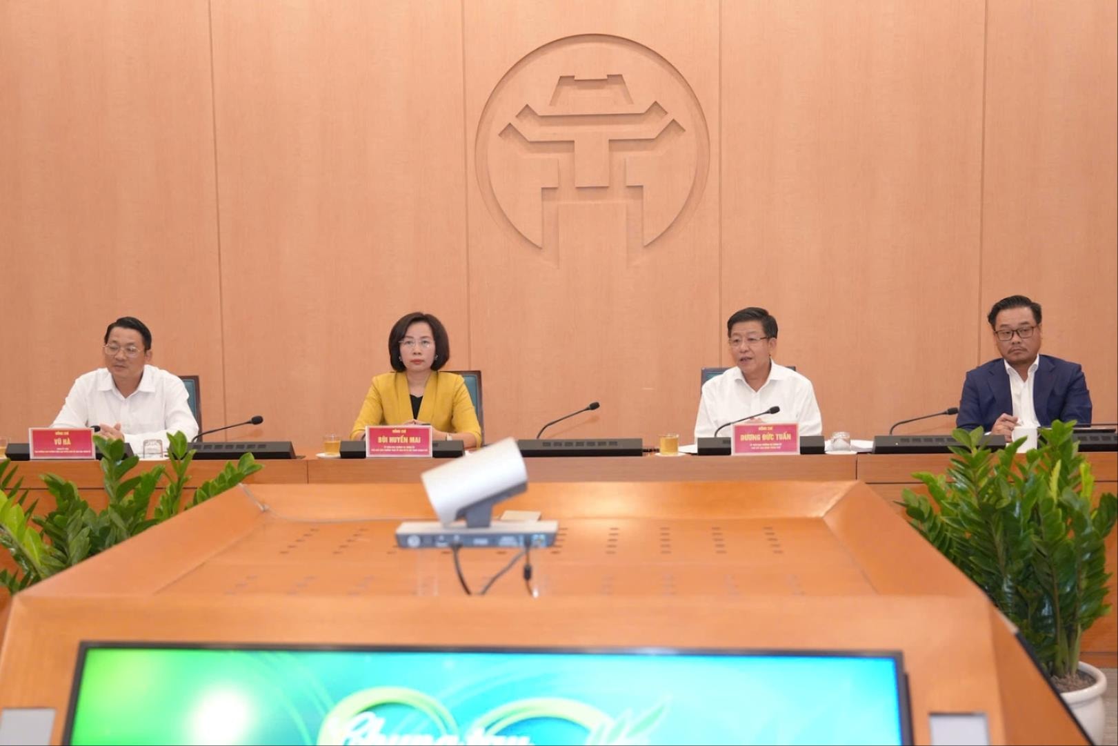 Phó Chủ tịch UBND thành phố Hà Nội Dương Đức Tuấn và Phó Chủ tịch Thường trực Ủy ban MTTQ Việt Nam thành phố Hà Nội Bùi Huyền Mai chủ trì hội nghị. Ảnh: PV