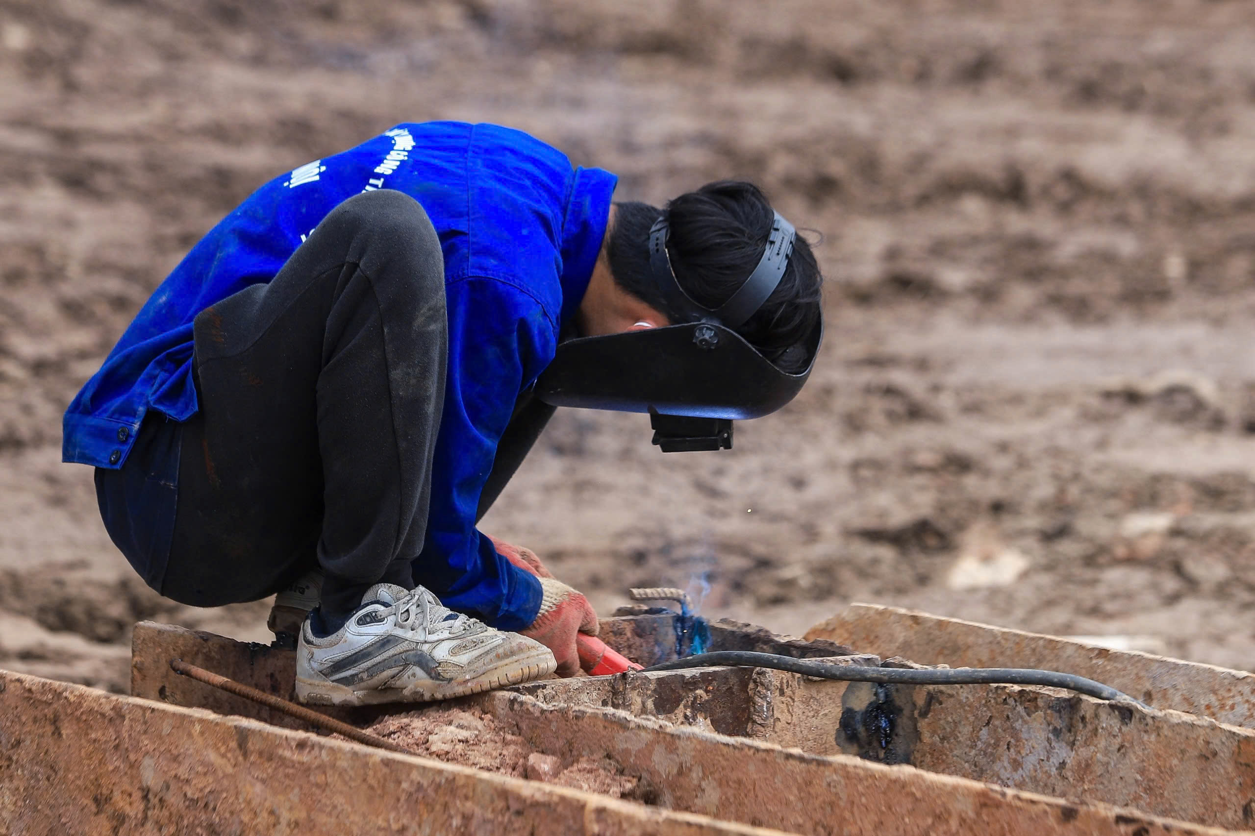 Công nhân trên công trường thi công hồ điều hòa Phú Đô. Ảnh: TIẾN CƯỜNG