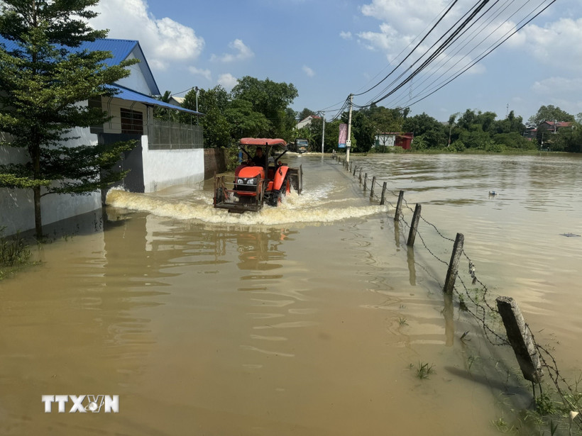 Nước vẫn tiếp tục lên cao tại thôn Trung Kiên xã Trung Giã, Hà Nội. (Ảnh: Quốc Lũy/TTXVN)