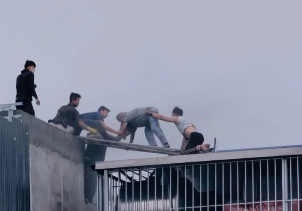 Ông Nguyễn Văn Dung là người mặc áo đen cùng với con rể của chủ nhà là ông Nguyễn Tiến Long đã leo lên sân thượng ngôi nhà bị cháy, dỡ mái tôn, cứu những người bị mắc kẹt.