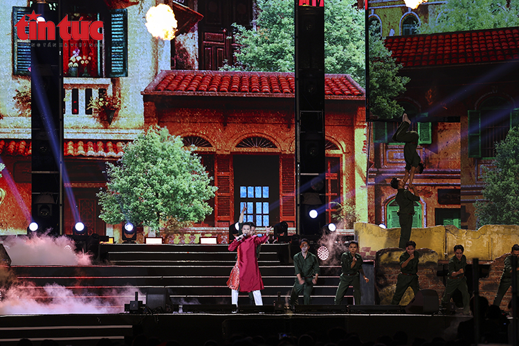 Tiết mục tái hiện không gian Hà Nội xưa trong chương trình, gợi nhớ những ký ức lịch sử hào hùng của Thủ đô.