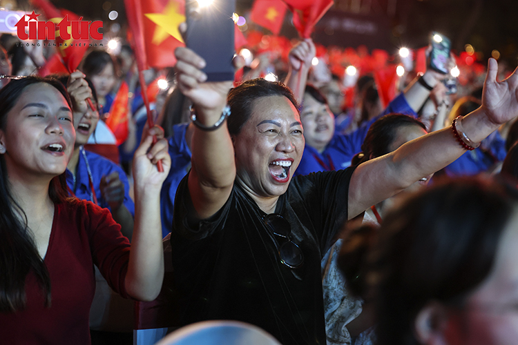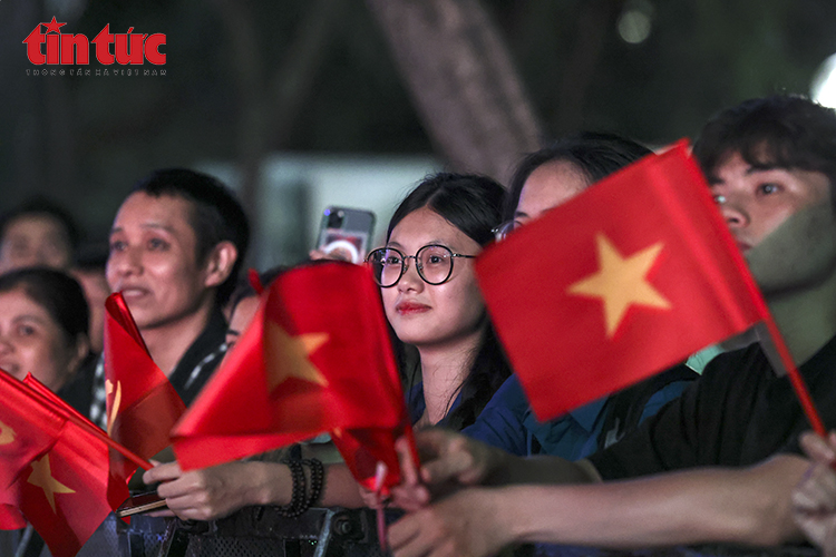 Người dân và du khách phấn khởi, tự hào vẫy cờ đỏ sao vàng cổ vũ các tiết mục biểu diễn.