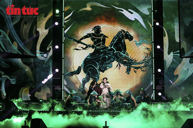 Tiết mục nghệ thuật lấy cảm hứng từ hình tượng Thánh Gióng - biểu trưng cho sức mạnh, ý chí vươn lên của dân tộc Việt Nam.