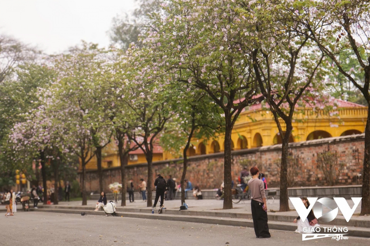 Không khí nhộn nhịp trên con phố hoa ban nở.