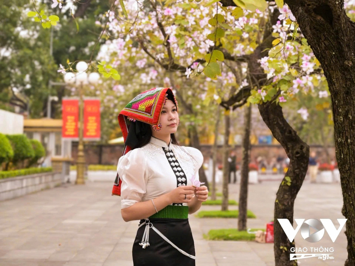 Quá yêu thích mùa hoa ban nở rộ, chị N. T. P. Liên (hiện sinh sống tại Hà Nội) đã lựa chọn khoác lên mình bộ trang phục dân tộc truyền thống, tranh thủ lưu lại những khoảnh khắc đẹp của Thủ đô tháng ba. Chị chia sẻ: “Hoa ban đang vào mùa nở rực rỡ, sẽ thật tiếc nếu không kịp ghi lại những bức ảnh mùa xuân Hà Nội đẹp như thế này. Vì vậy, mình đã chọn một bộ trang phục mang đậm hơi thở vùng Tây Bắc để chụp ảnh với hoa, hòa vào không khí và lưu giữ trọn vẻ đẹp của mùa hoa”.