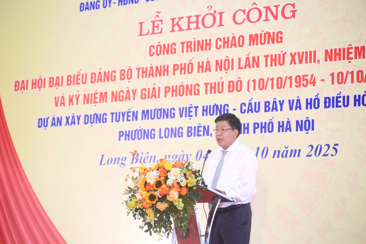 Bí thư Đảng ủy phường Long Biên Nguyễn Mạnh Hà phát biểu tại buổi lễ. Ảnh: TP.