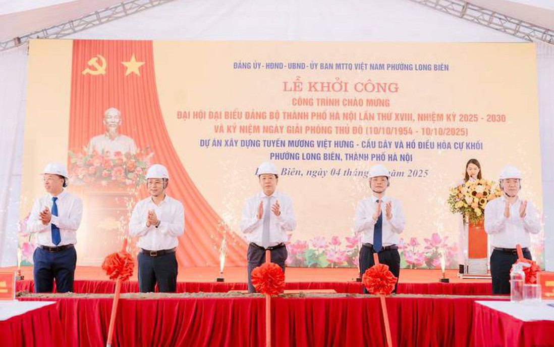 Sáng 4/10, Đảng ủy - HĐND - UBND - Ủy ban MTTQ Việt Nam phường Long Biên tổ chức khởi công dự án “Xây dựng tuyến mương Việt Hưng - Cầu Bây và hồ điều hòa Cự Khối”, chào mừng Đại hội Đảng bộ thành phố Hà Nội lần thứ XVIII và kỷ niệm 71 năm Ngày Giải phóng Thủ đô (10/10/1954 - 10/10/2025), với tổng mức đầu tư 972,5 tỷ đồng.