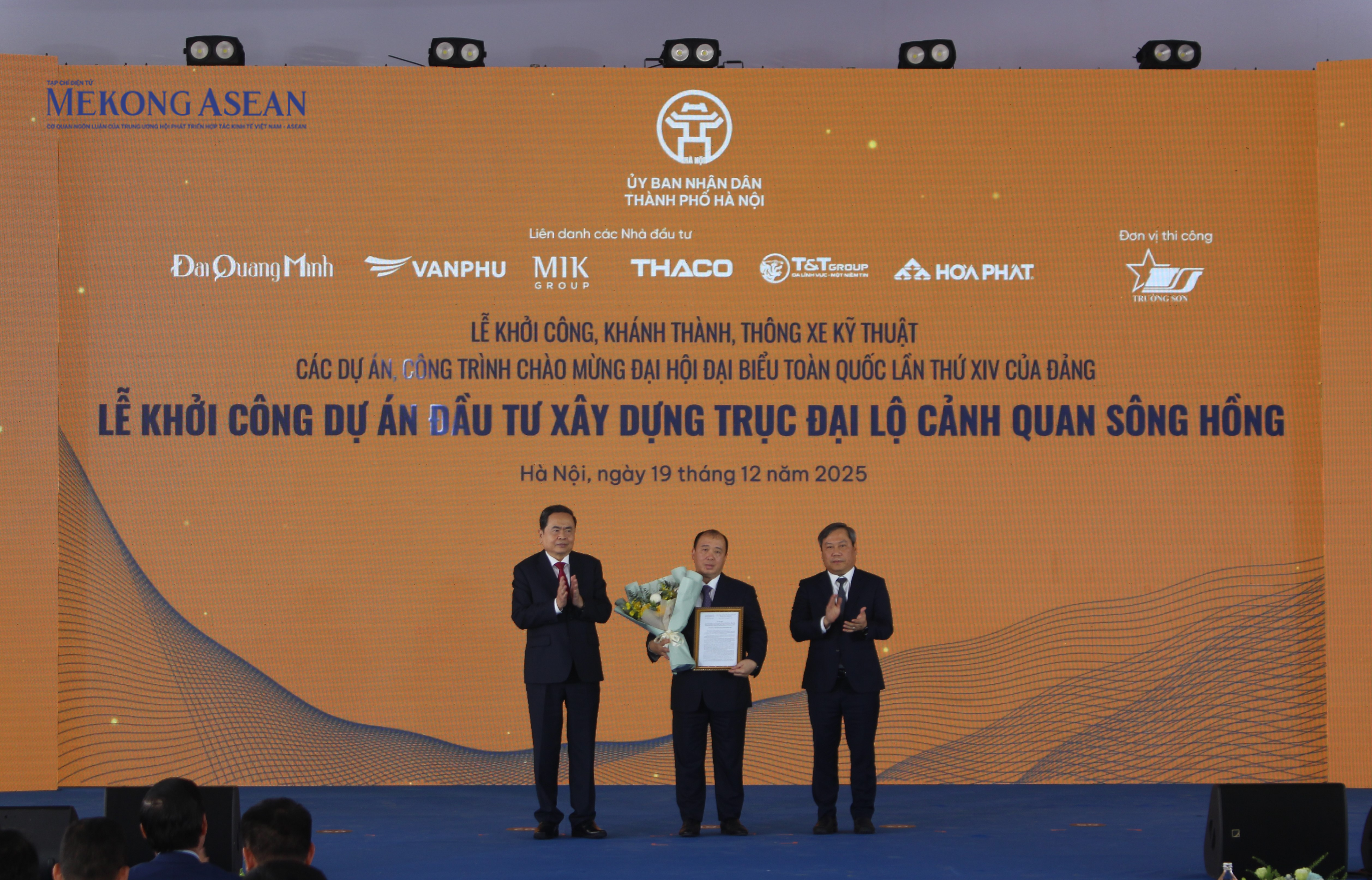 Sáng ngày 19/12/2025, tại phường Phú Thượng, liên danh các nhà đầu tư gồm CTCP Đầu tư Địa ốc Đại Quang Minh, CTCP Phát triển Bất động sản Văn Phú, CTCP Tập đoàn MIK Group Việt Nam, CTCP Tập đoàn Trường Hải (Thaco Group), CTCP Tập đoàn T&T Group và Tập đoàn Hòa Phát đã tổ chức Lễ khởi công dự án đầu tư xây dựng trục đại lộ cảnh quan sông Hồng dưới sự chỉ đạo của UBND TP Hà Nội.