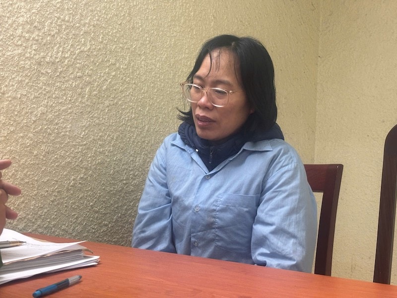 Cán bộ điều tra hỏi cung đối tượng Hà Thị Thương.