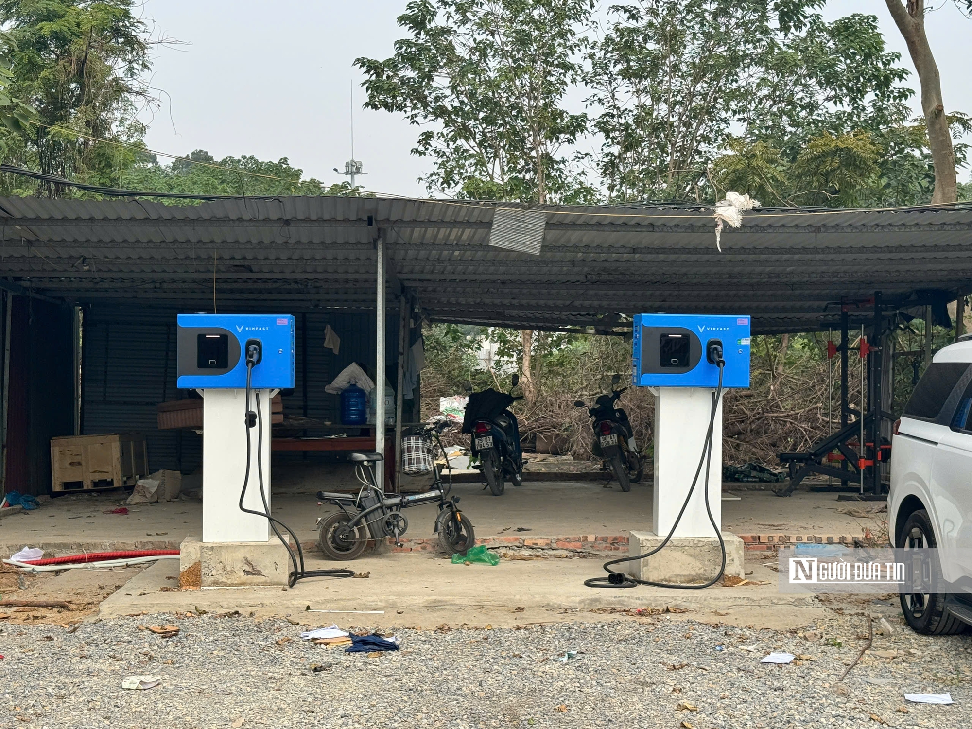 Trong khu vực của bãi trông giữ xe, cán bộ phòng Kinh tế Hạ tầng và Đô thị phường Vĩnh Hưng cùng phóng viên cũng phát hiện 2 trụ sạc xe ô tô điện mới được xây dựng lắp đặt. Theo vị cán bộ này, việc lắp đặt các trạm sạc này UBND phường chưa nắm được và sẽ báo cáo lãnh đạo phường để yêu cầu làm rõ và chỉ đạo tháo dỡ. Đồng thời sẽ làm việc với bên điện lực về việc cung cấp điện tại đây. Ngoài ra sẽ báo cáo lãnh đạo phường chỉ đạo lực lượng Công an phường tổ chức ngăn chặn, xử lý đối với hành vi tiếp tục trông giữ phương tiện không phép do ông Trần Văn Tuyền thực hiện.