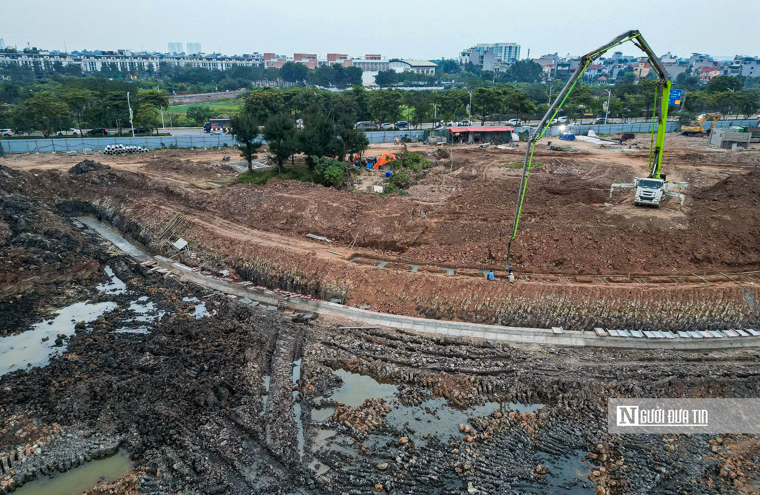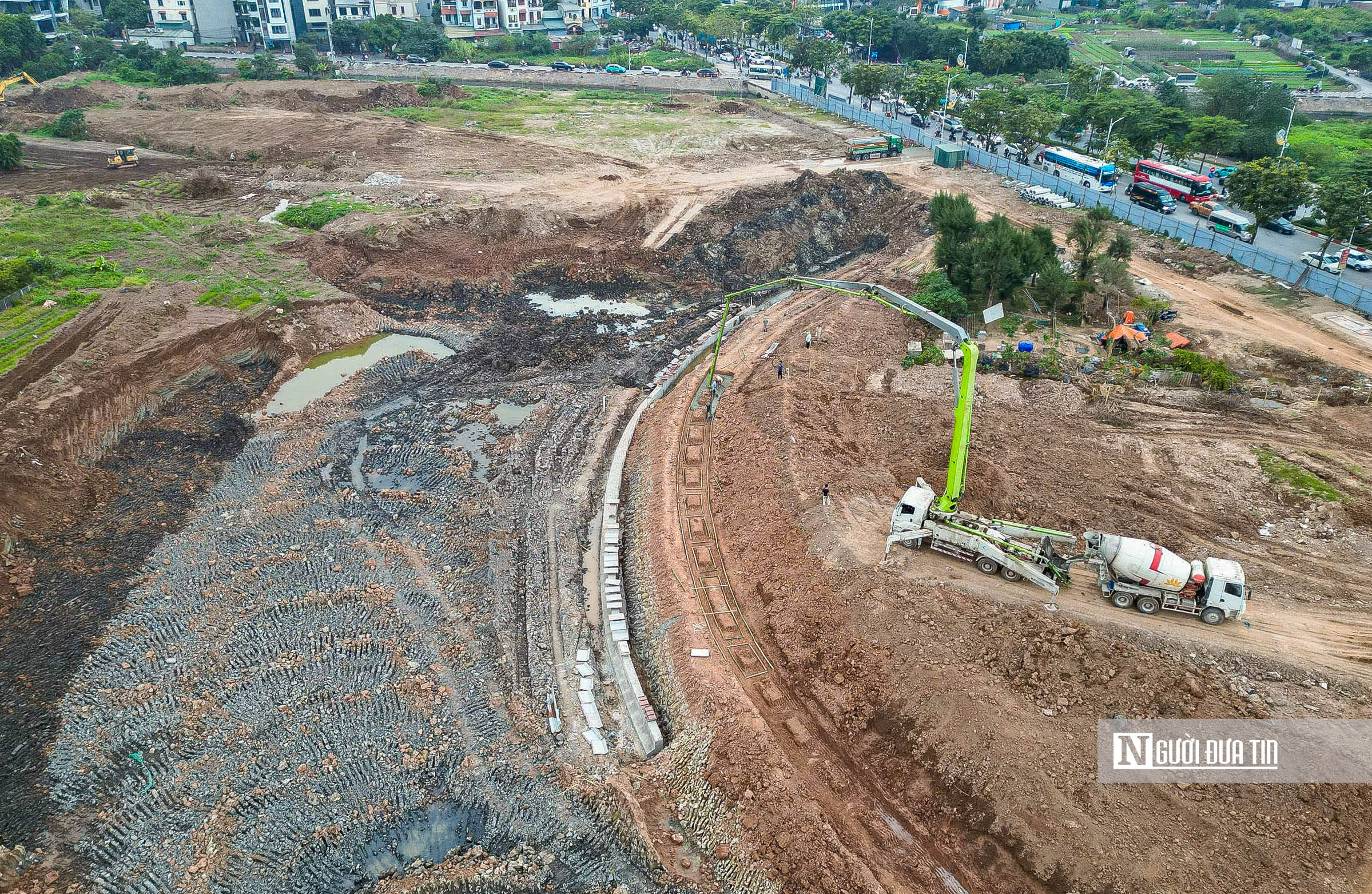 Theo ghi nhận của Người Đưa Tin, hiện nay máy móc, nhân lực của nhà thầu đang tích cực triển khai dọn dẹp mặt bằng, đào hồ…